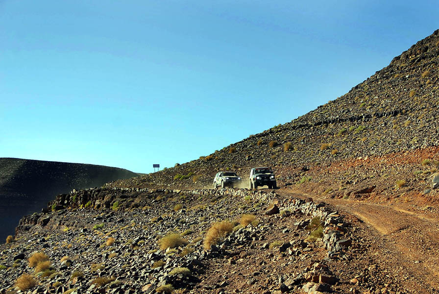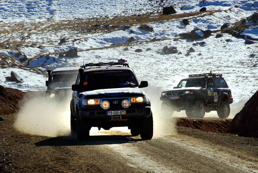 Viendo como los primeros rayos de sol iluminaban las nevadas cumbres del Atlas, a las 8 de la mañana, todos los equipos estaban ya preparados para enfrentarse a una jornada que sería realmente dura. De carácter claramente montañoso, en esta ocasión y por primera vez, cinco de los waypoint puntuables para el Trofeo ARB de conducción en arena no lo eran sobre este blando elemento, sino que estaban situados sobre unos técnicos y duros tramos trialeros que pusieron a prueba la habilidad de conductores y la fiabilidad de los coches debido a su alta dificultad en algunos puntos.