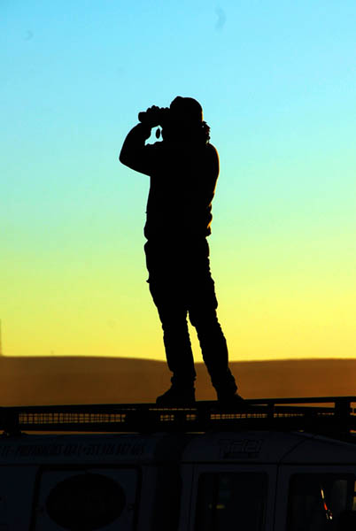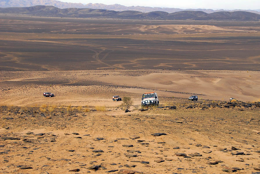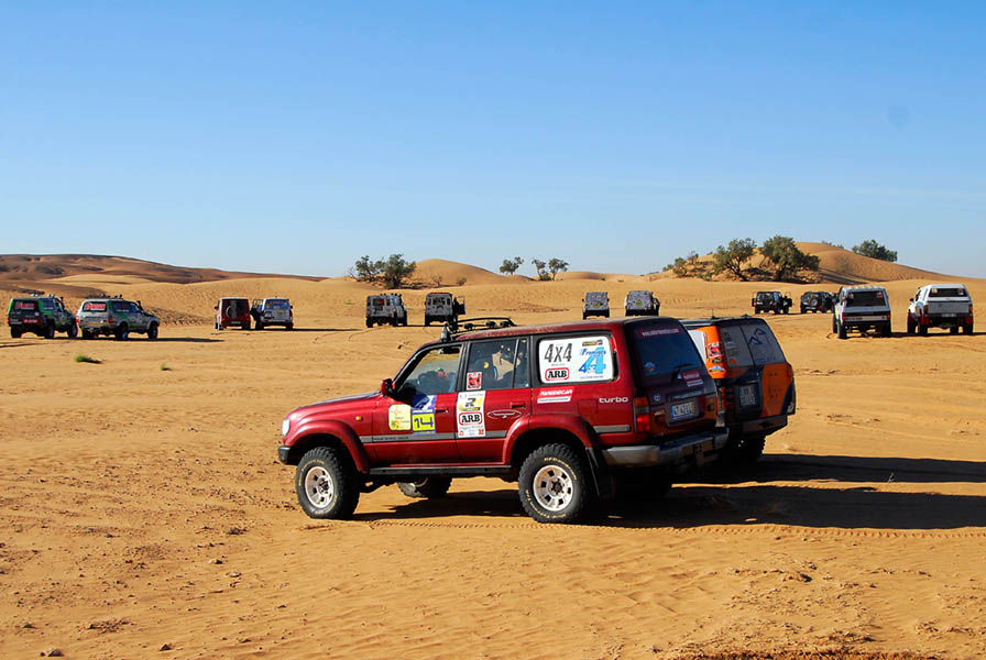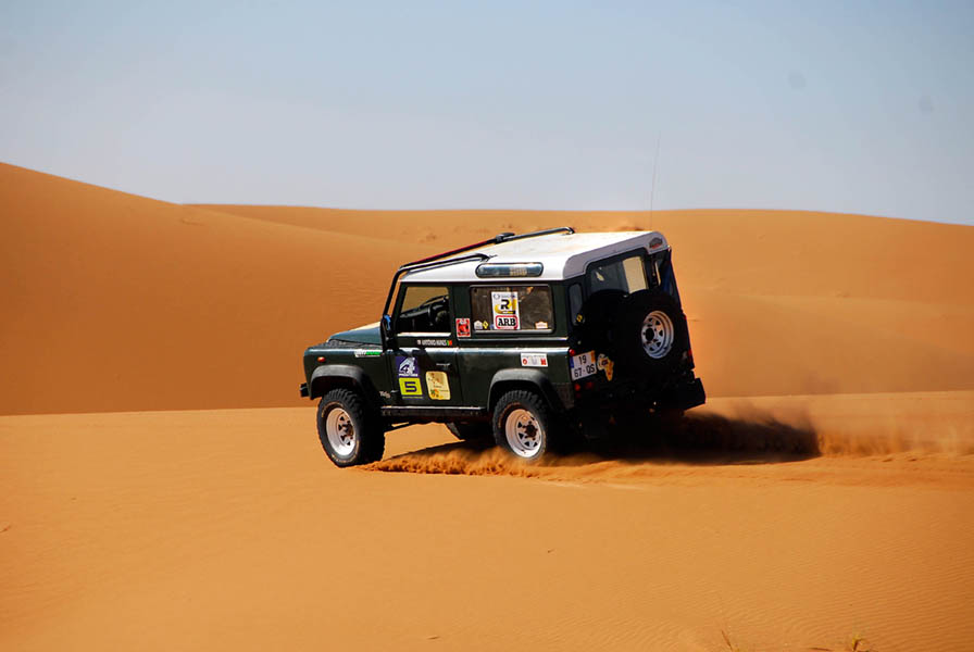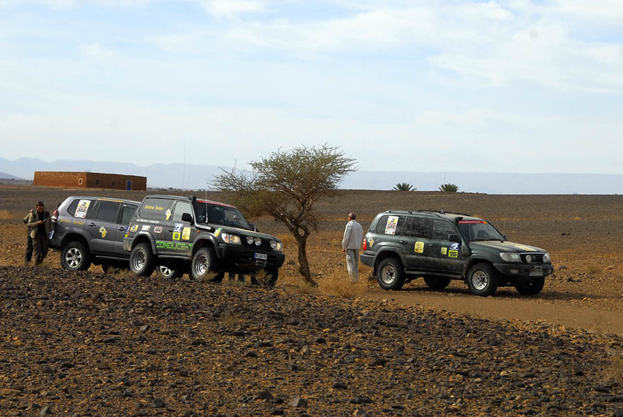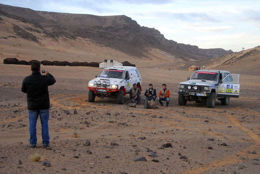 El día comenzaría con un enlace de 80 Km. hasta las inmediaciones de Mhamid, en la que se daría la salida de manera simultánea tipo “Le Mans”, tras entregarle a un miembro de cada equipo el carnet de ruta de la jornada correspondiente. Esta sería la primera etapa de arena, muy deseada por muchos de los participantes, temida por otros y llena de incertidumbres para todos, como así quedaría demostrado al final de la misma.