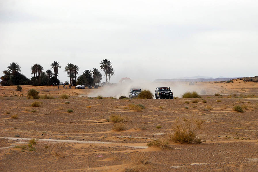 Tras recibir los carnets de ruta en la piscina del hotel Kenzi Azghor, los equipos realizaron una salida simultánea para dirigir la proa de sus coches hacia Zagora, donde terminaría la etapa.