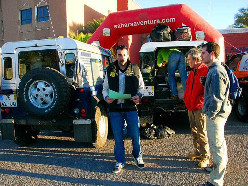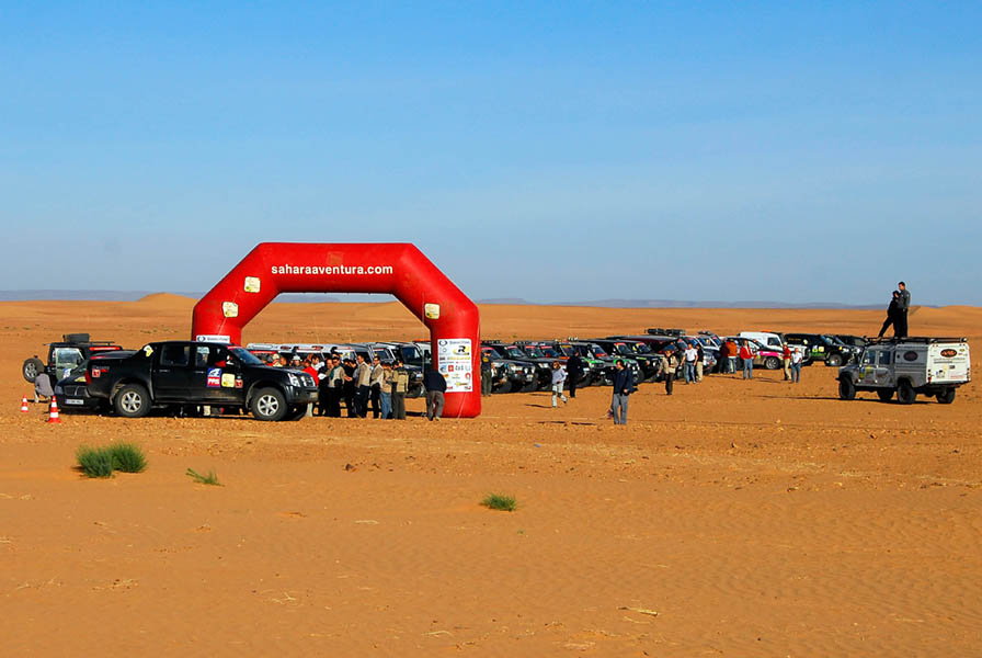 Tras pasar por las gélidas temperaturas de los más altos picos del Atlas, los más de 30 coches de los equipos participantes en esta 12ª edición de Sahara Aventura, procedentes de toda la Península Ibérica, de las Islas Canarias y las Azores, se dieron cita en la ciudad de Ouazarzate, donde en el hotel Kenzi Azghor, pasaron las preceptivas verificaciones administrativas y técnicas para poder participar en la prueba.