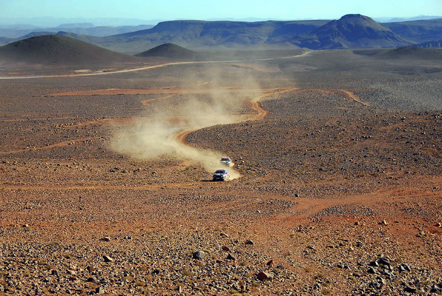 La belleza de la esta etapa, de transición entre la montaña y la hammada, también era comparable a su dureza, pues además de larga, abundaban las pistas en mal estado, algo que provocó que el calcular bien los tiempos para poder llegar a tiempo, tanto al control de seguridad como a la meta, fuese fundamental.