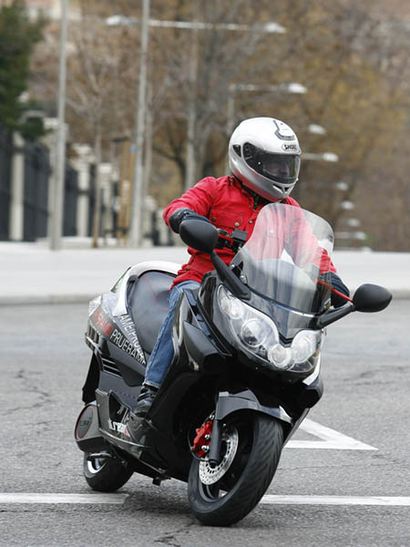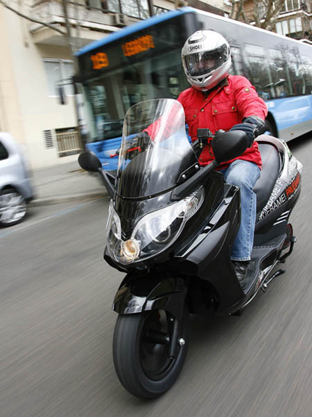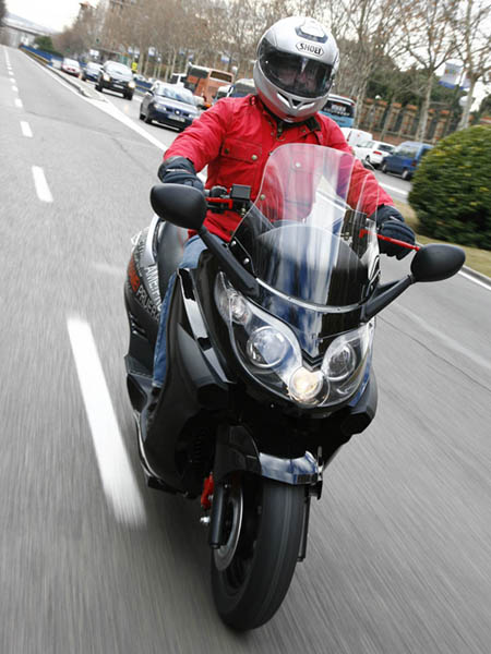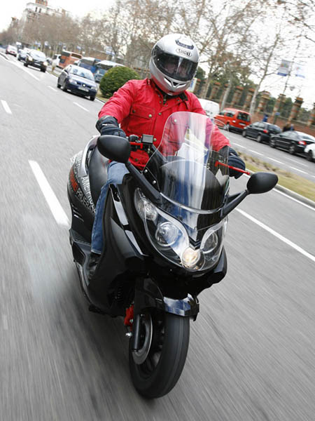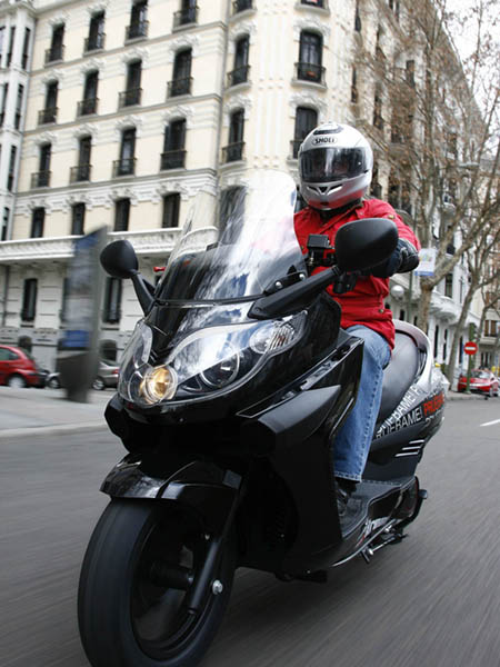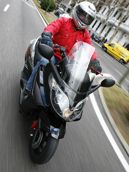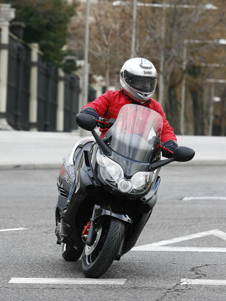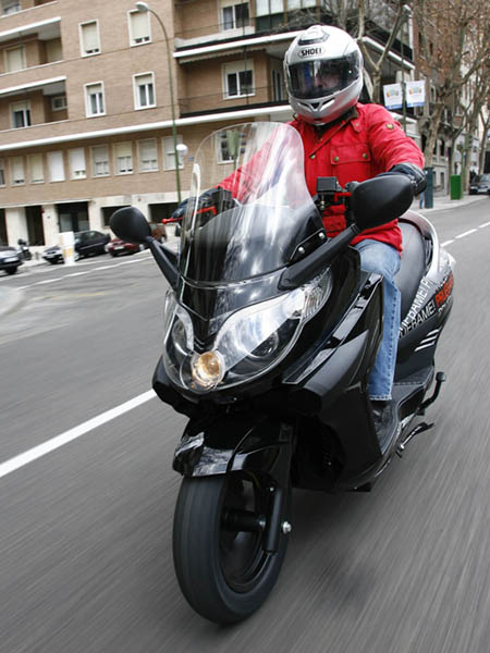 La agilidad es comparable al de un scooter de 200-250 c.c., con un peso de 210 Kg. no es, evidentemente un 125 c.c. ligero, pero se desenvuelve con soltura en medio del tráfico urbano, mostrando un buen aplomo en los tramos más rápidos; la dirección se muestra un tanto pesada en los giros más cerrados, habiendo cierto desacuerdo entre la parte delantera y la trasera, posiblemente motivado por el tipo de perfil de los neumáticos que monta, pero en cualquier caso, no es más que una sensación a la que hay que acostumbrarse.