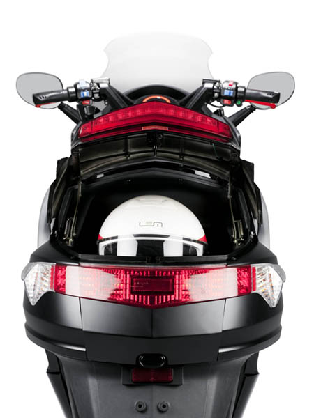 La capacidad de carga es otro punto fuerte del Stream, con un maletero de doble acceso (bajo el asiento y a través de un portón trasero), que permite alojar 2 cascos integrales, como se puede ver en las fotos, o llevar objetos largos utilizando toda la longitud del alojamiento, además, se ofrece como opción un top case que aumenta la capacidad total de carga hasta casi 100 litros.