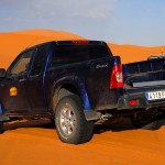 En campo, el límite lo marca el ángulo de salida como en todas las pick up, pero este es realmente alto, gracias de nuevo a las ruedas y la elevación de suspensión, que en conjunto le dan una buena distancia libre al suelo con buenos ángulos de ataque y ventral. En cortas y gracias a entregar el par motor a tan pocas vueltas, es un autentico tractor que te permite circular entre 1000 y 2000 r.p.m con potencia de sobra para salir de cualquier situación y/o subir cuestas, en las que el límite lo marca la adherencia de los neumáticos.
