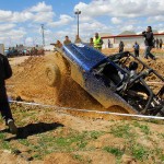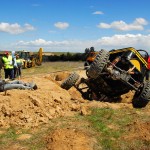 La primera jornada estuvo protagonizada por la lluvia, y la zona preparada (solo para la categoría de extremos), de una longitud de unos 150 mts. tenía en su recorrido contenedores, bloque de hormigón, zanjas de todo tipo, una importante poza… y la dificultad que añadió la pertinaz lluvia que embarró la tierra y hacía tremendamente resbaladiza la superficie de los contenedores.