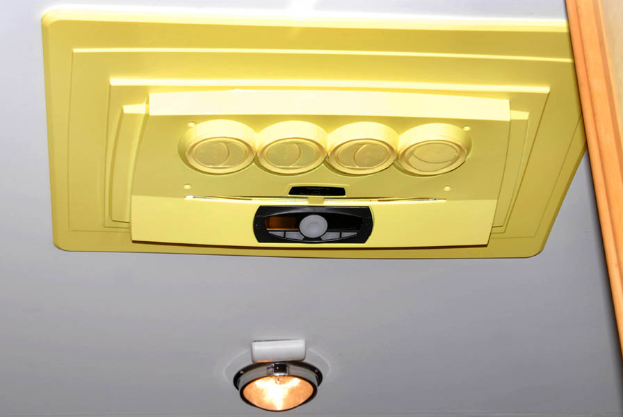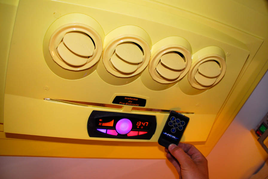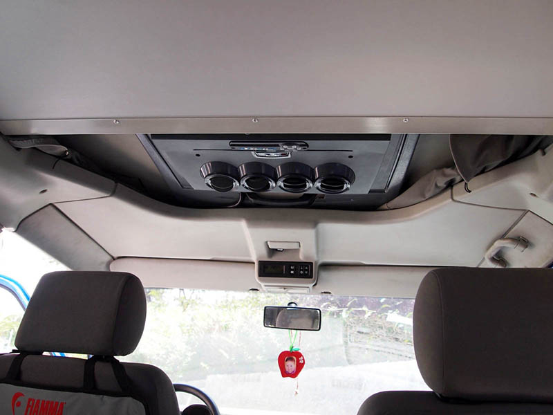 Tras la instalación, que se realiza en dos o tres horas, dependiendo de si tenemos ya agujero de una claraboya previa o hay que hacer un nuevo hueco, comprobamos la potencia del aparato, graduable en diez niveles y con un flujo de aire realmente importante a través de sus cuatro aireadores, regulables independientemente, a partir del nivel 6, pero lo realmente sorprendente llegó a la hora de medir el consumo eléctrico con la pinza amperimétrica, comprobando como el consumo medio (con el aire en el nivel 7) se mantenía por debajo de los 3 Amperios, subiendo a menos de 6 Amperios a máxima potencia y llegando, en el peor de los casos, con la potencia al máximo y las dos bombas enviando agua a la vez (operación que dura unos segundos) a un consumo máximo inferior a los 9 amperios. Si comparamos estas medidas con las habituales en cualquier aire acondicionado (entre 60 y 100 Amperios de manera continua), nos daremos cuenta del verdadero alcance de este sistema, que es el de poder utilizarlo de manera continua sin necesidad de una toma de corriente externa, un sistema de baterías sobredimensionado, o temor a que se nos pueda descargar la batería tras un corto periodo de uso.