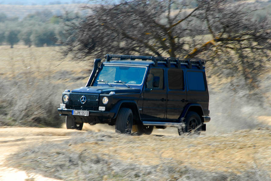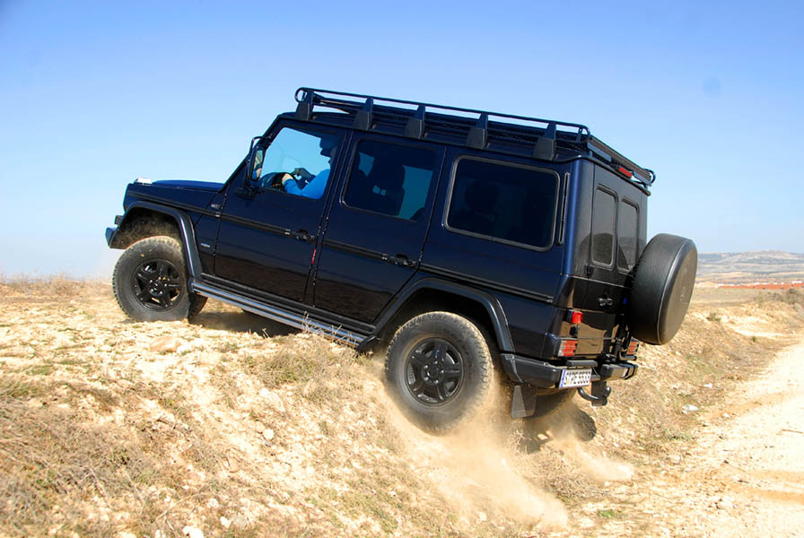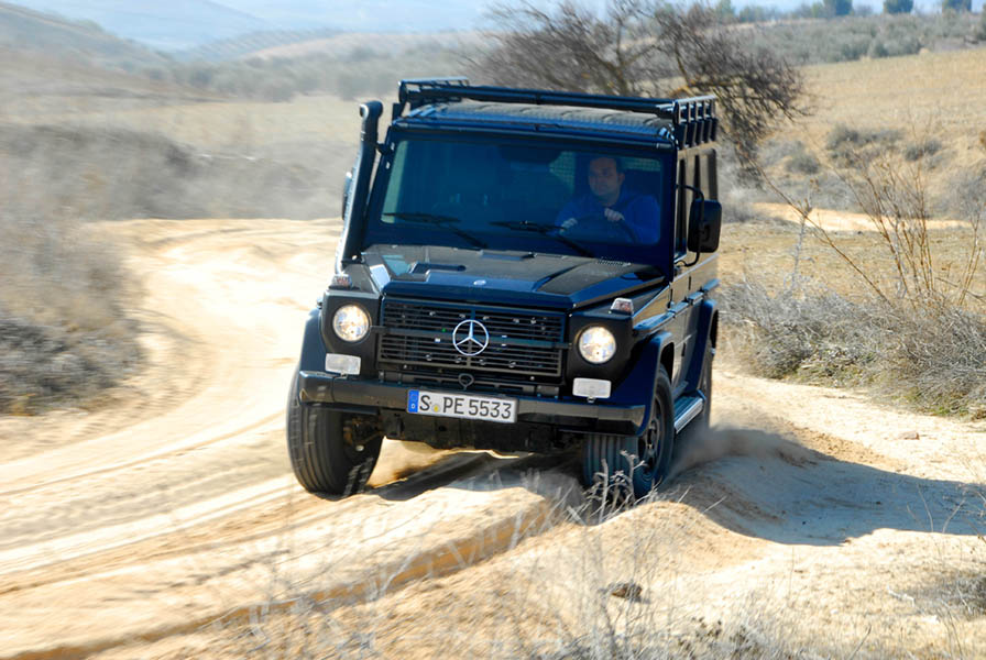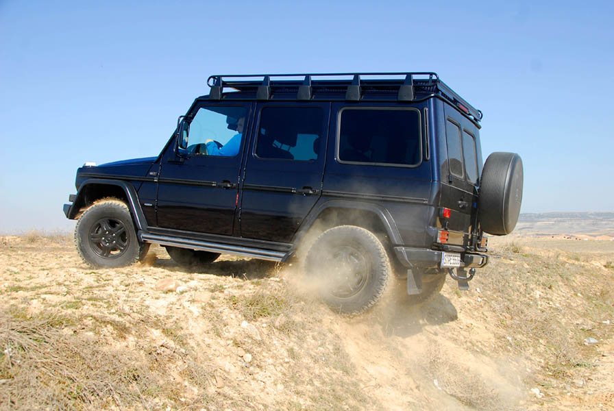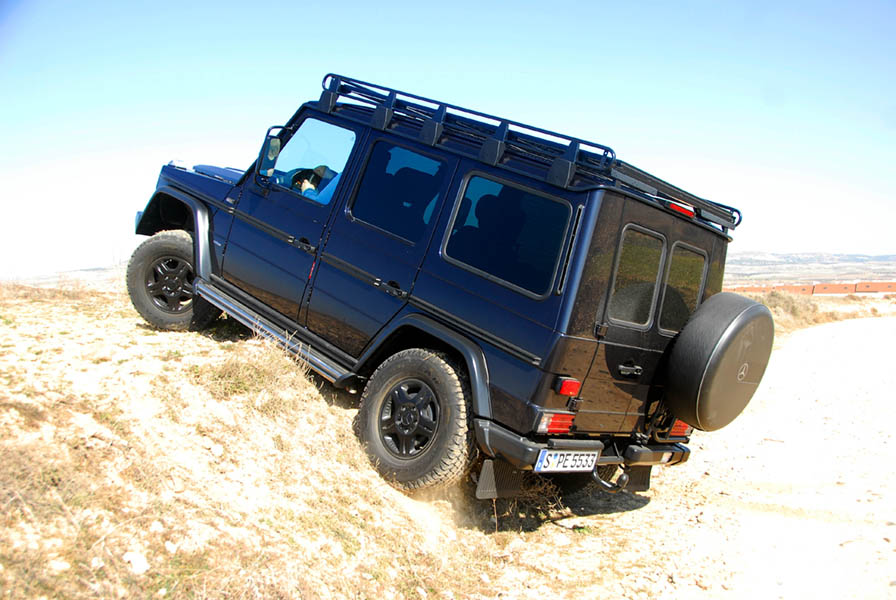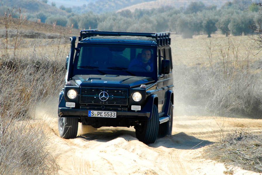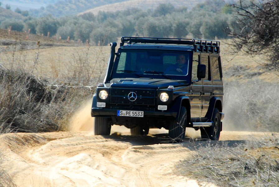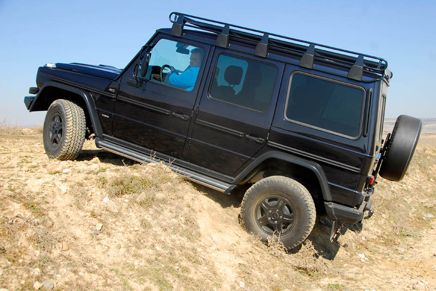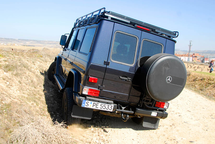 El desagüe en el suelo, para poderlo lavar a manga después de volver del barro, la fortaleza de su chasis, su sistema de tracción, el gancho de arrastre delantero, su robustez general, son detalles que hacen del G (acrónimo de la palabra alemana que denota el vehículo todo terreno o Geländewagen), uno de los todo terrenos más capaces del mercado tal y como sale de la cadena de montaje.