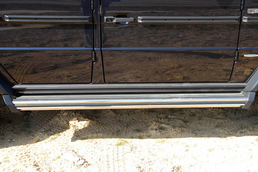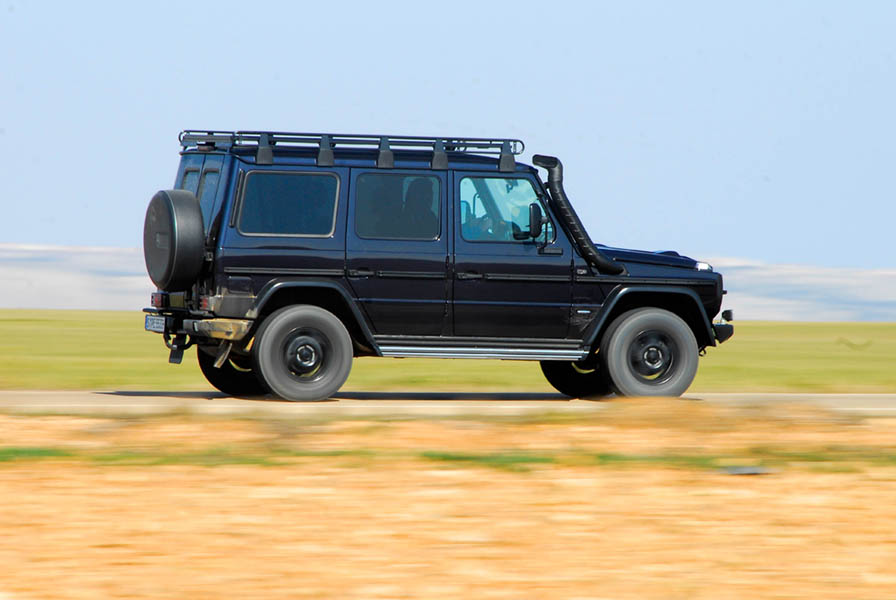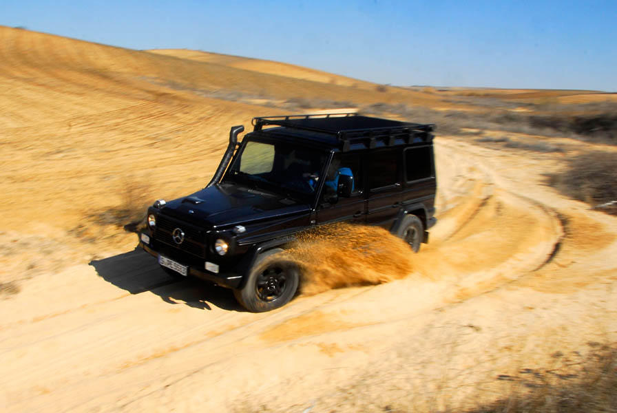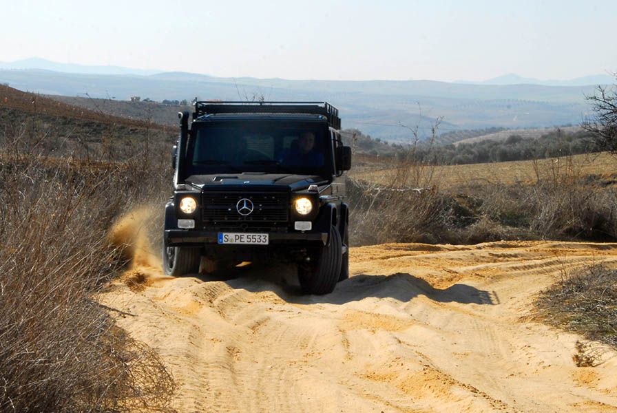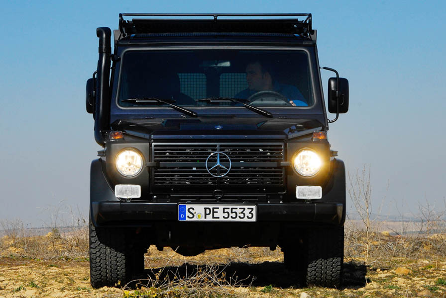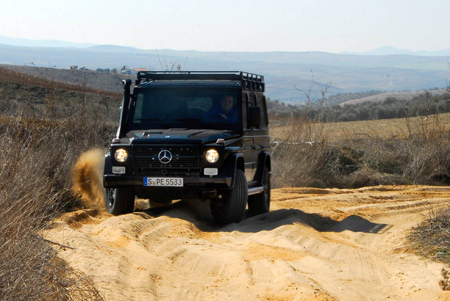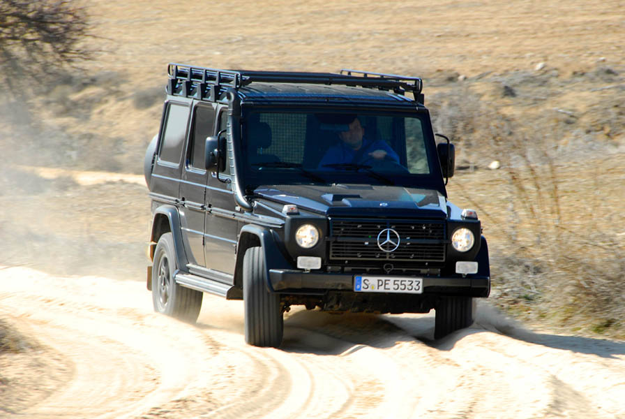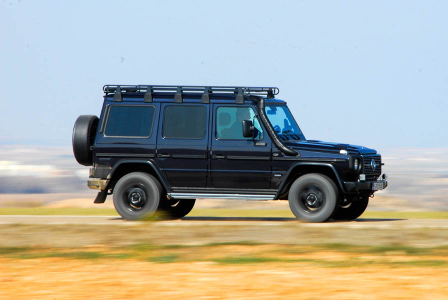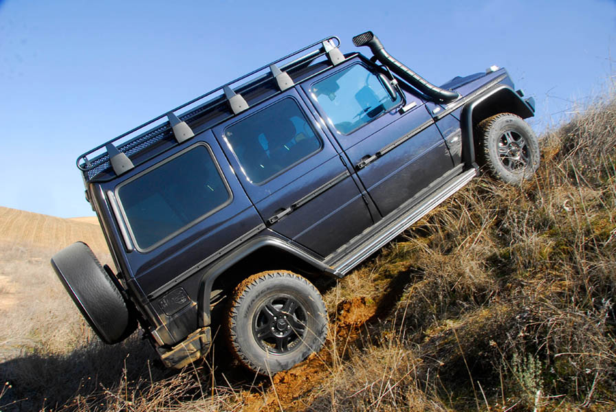 El desagüe en el suelo, para poderlo lavar a manga después de volver del barro, la fortaleza de su chasis, su sistema de tracción, el gancho de arrastre delantero, su robustez general, son detalles que hacen del G (acrónimo de la palabra alemana que denota el vehículo todo terreno o Geländewagen), uno de los todo terrenos más capaces del mercado tal y como sale de la cadena de montaje.