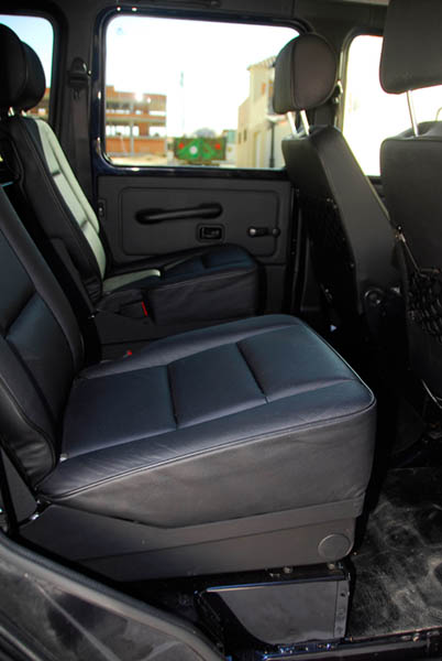 En el interior hay cuatro asientos individuales (por primera vez en un G), tapizados en símil piel, revestimientos de caucho en el suelo, compartimento de carga con suelo de madera y equipado con raíles y enganches para sujetar la carga.