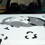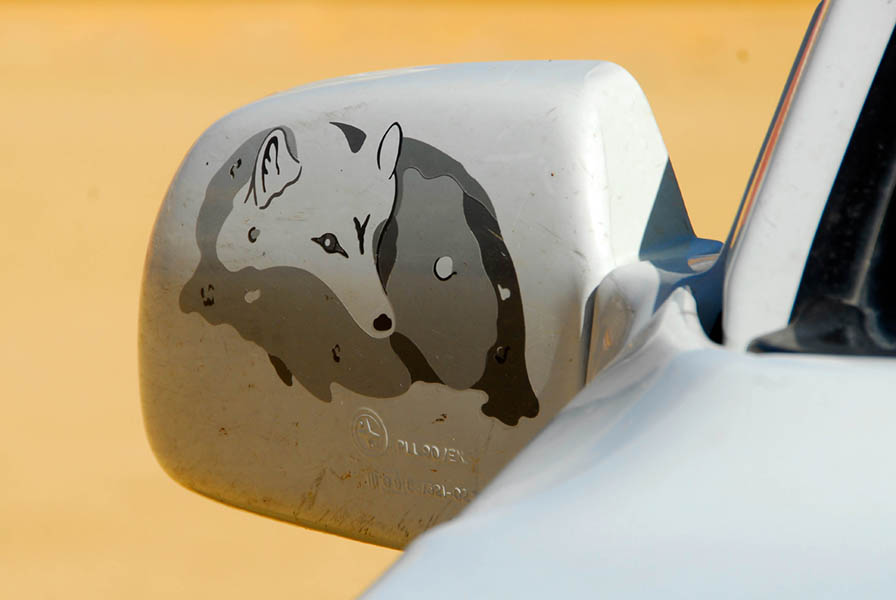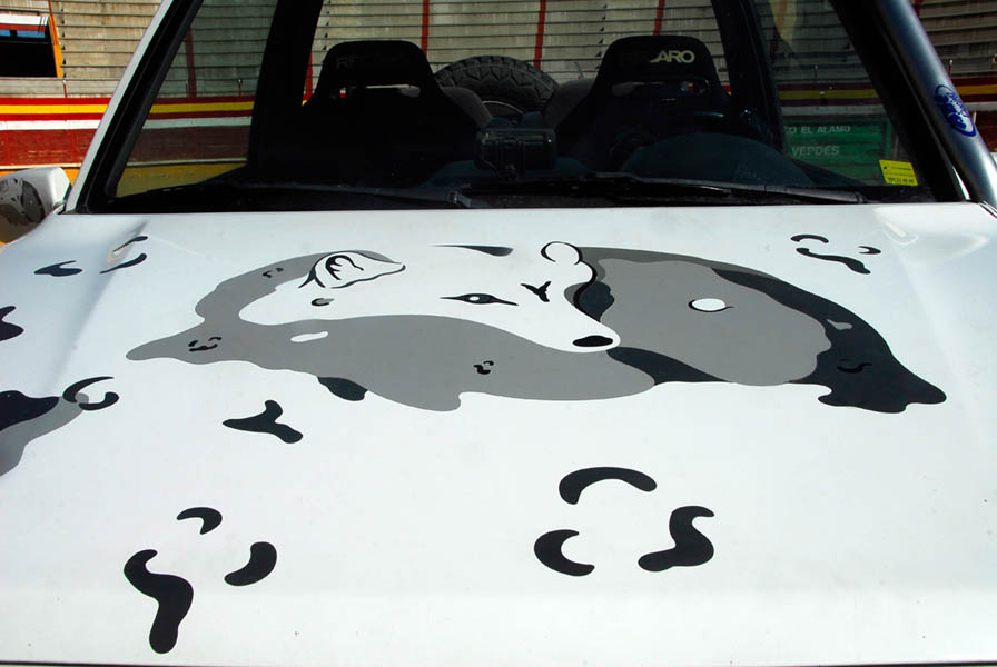 Finalmente, se rotuló el coche gracias a unas buenas amigas que realizaron un camuflaje de alta montaña y “camuflado” en el camuflaje, tanto del capó como de los retrovisores, va un zorro que me gusta mucho.