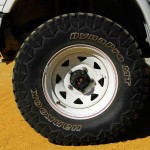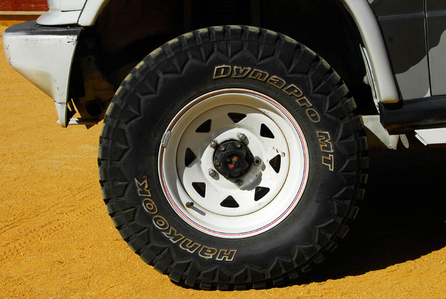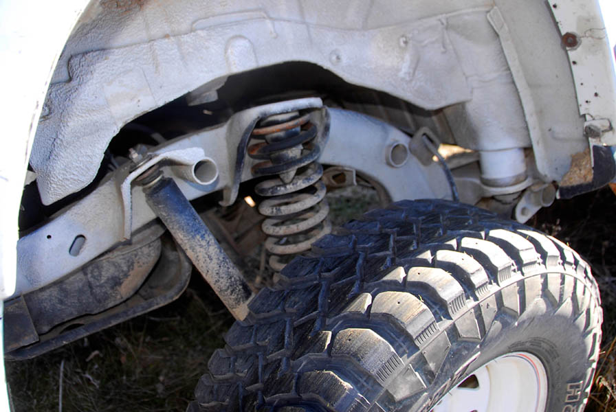 A continuación se le ha realizado un body-lift de 5 cm. para darle altura a la carrocería y que las nuevas ruedas puedan trabajar bien. Estas son unas Hankook Dynapro MT en medidas 30×9.50 15 calzadas sobre unas llantas Mangels de 7”x15 con un offset de -24mm.