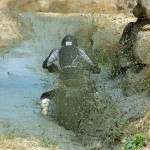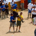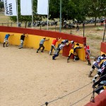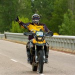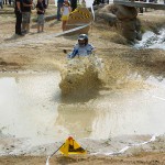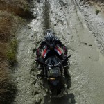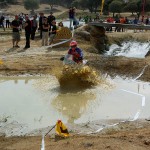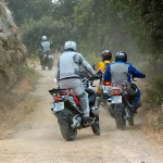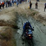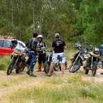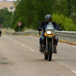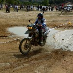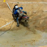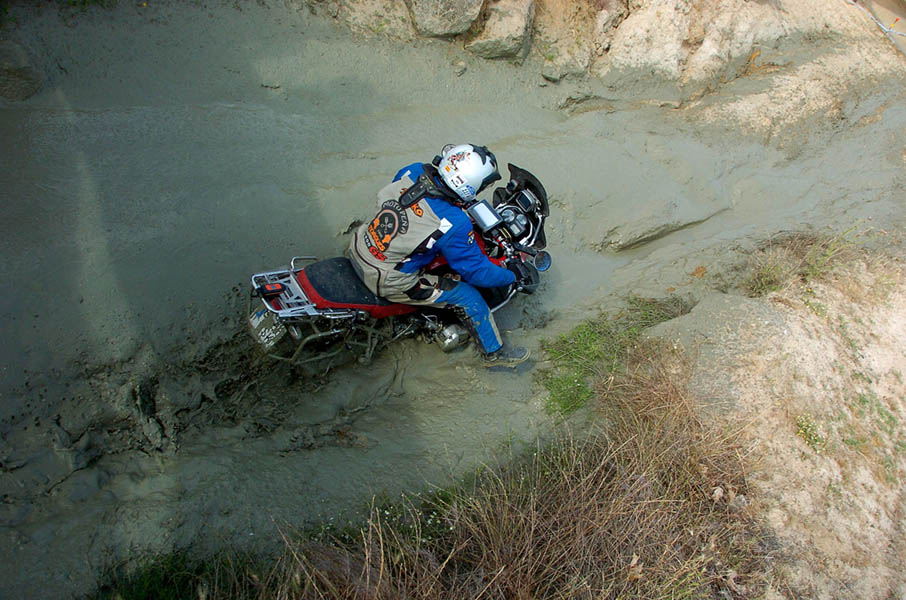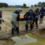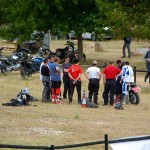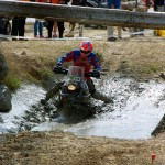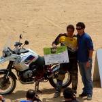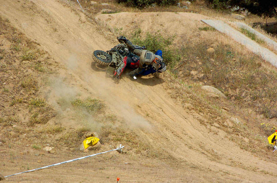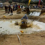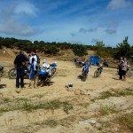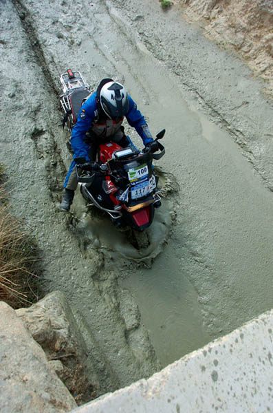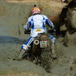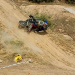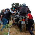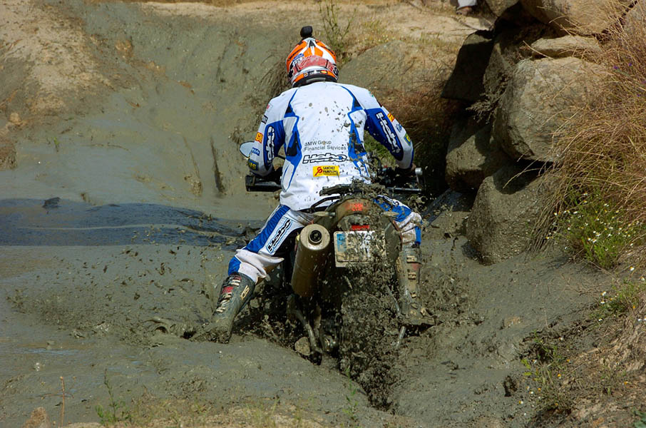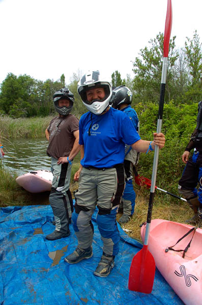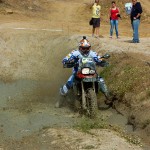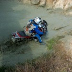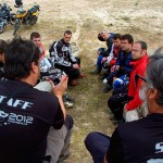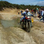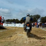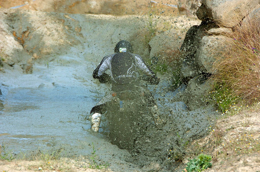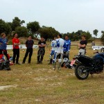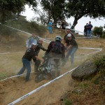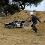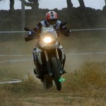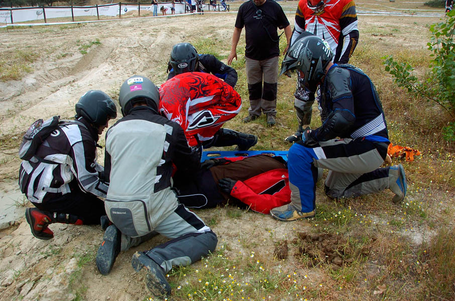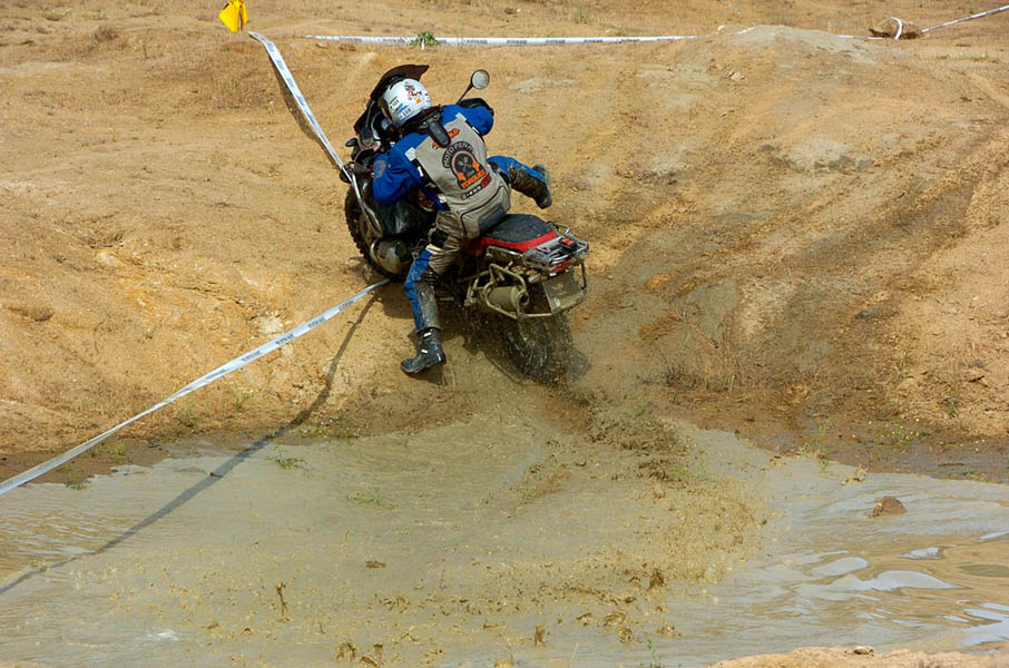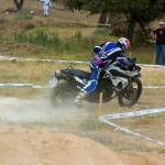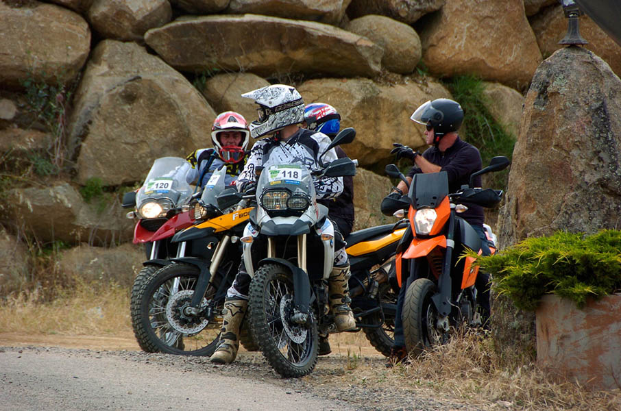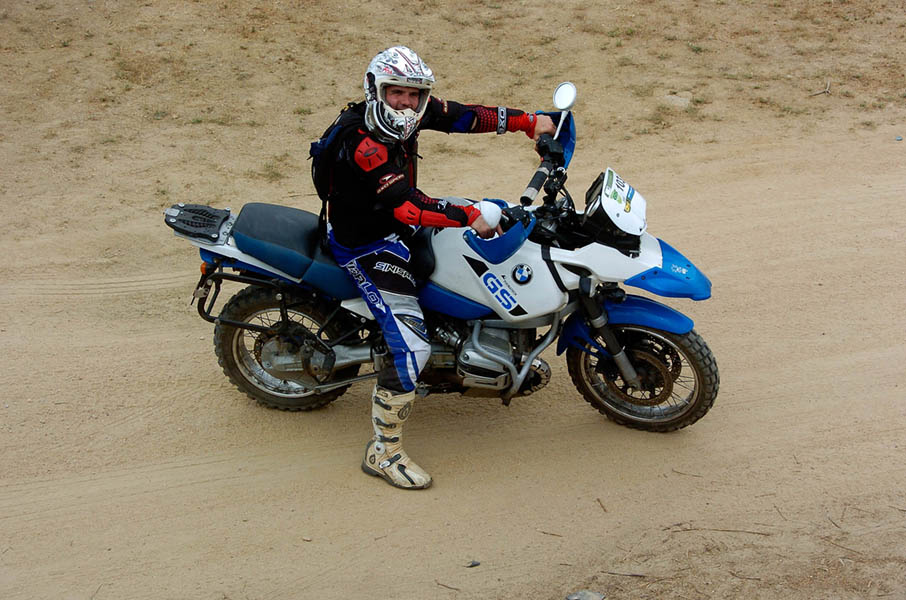 Pasear de un lado a otro del circuito, te permitía compartir momentos de charla con unos y otros, “mezclar” la contemplación de los más hábiles y rápidos pilotos del Desafío GS, con los titubeantes comienzos de muchos de los alumnos de la Escuela GS, que nunca habían pisado tierra con sus motos y, lo que es mejor, comprobar como a lo largo del fin de semana su habilidad y su soltura encima de la moto se multiplicaba por momentos. Ver como caída tras caída, en un medio controlado y con profesores siempre “encima” de los alumnos, se pierde el miedo a afrontar una zona, que en principio pudiera parecer imposible para uno. Disfrutar del trabajo en equipo que los participantes en el Desafío GS también tenían que realizar y como, en muchas ocasiones, el interés individual dejaba paso al “todos a una” como una piña, para trasladar a un “herido” en medio del campo o para sujetar o levantar la moto de un compañero en medio de cualquier trialera…