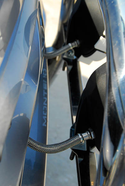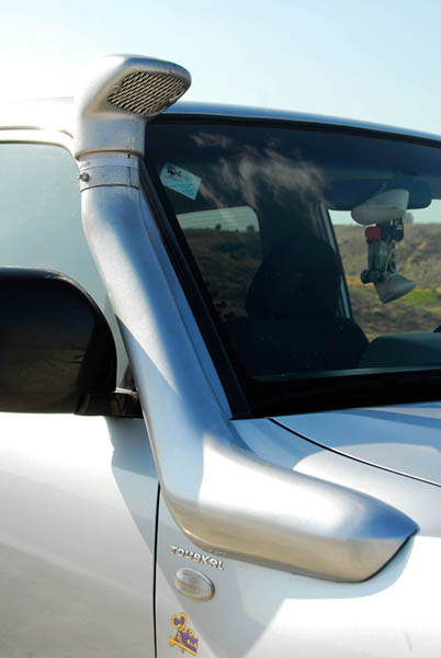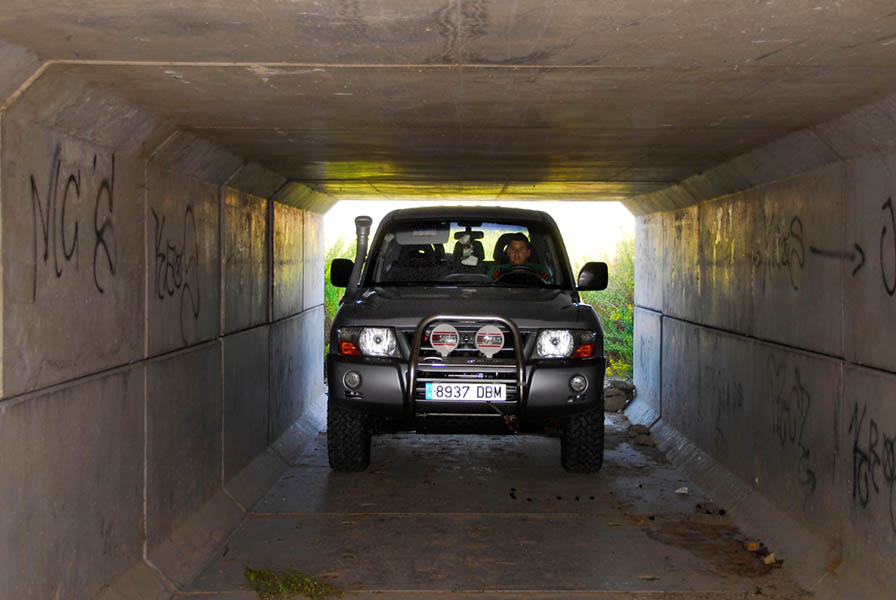 El coche, como se puede ver en las fotos y con la única condición de quitarle las pegatinas, parecería una unidad de fábrica, una unidad muy especial, desde luego, pues el ancho, el alto, el snorkel, la defensa, la plancha cubrecarter… se notan, pero todo está tan bien terminado, que pasaría por una unidad original. En este sentido, es destacable la instalación de las tomas del compresor, perfectamente rematadas, la pintura del snorkel, exacta a la original, o hasta la terminación de algo tan poco estético como son los limitadores de extensión de los amortiguadores.