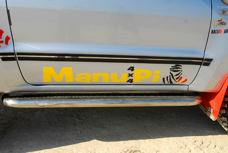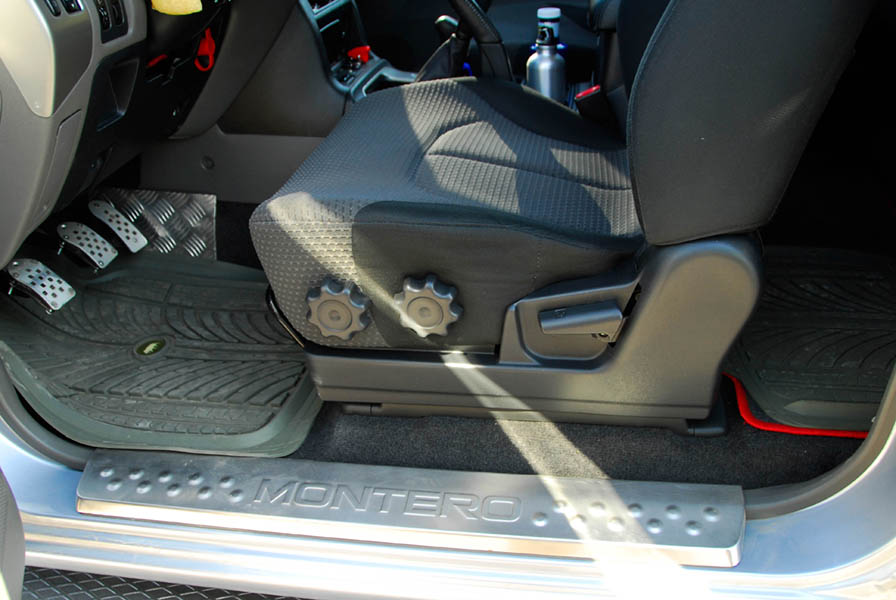 La preparación comenzó poniéndole unas estriberas originales de Mitsubishi, después se montó el Bull Face delantero (la defensa cromada), en Cobra 4×4 y poco a poco se fueron modificando pequeñas cositas, como el recorte de los paragolpes para mejorar los ángulos de serie que se quedaban un poco justos, a continuación se le montó un cubre carter de Soldaduras Carmona y unas llantas desplazadas Mangels con un ET 20 (ET 45 de origen), y unas cubiertas BF Goodrich Mud-Terrain 265/75-16. Posteriormente se le instalaron unas faldillas Sparco en color rojo, un snorkel Cibex, completamente enmasillado y pintado del color del resto de la carrocería y unas rejillas de protección para los faros antiniebla.
