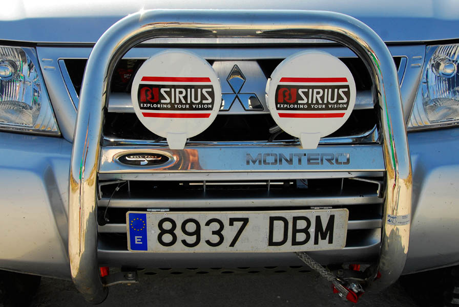 Siguiendo con el exterior, además de la bola de remolque desmontable en la trasera, en la parte frontal se le instalaron unos faros de largo alcance BJ Sirius