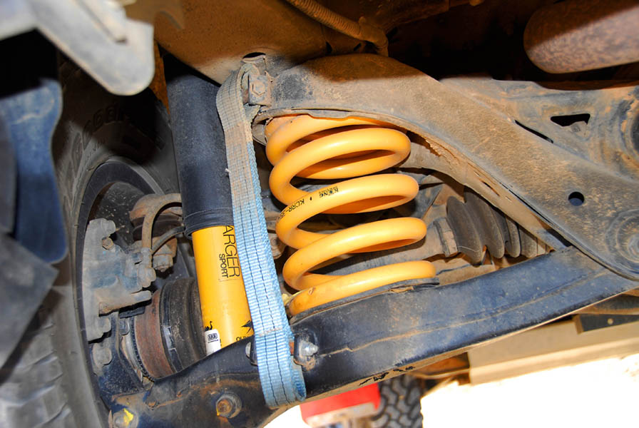Como amortiguación lleva montados unos amortiguadores OME Nitro Charger Sport, un 30 % más duros que la serie normal de OME y muelles King Spring Heavy Duty, atrás se le han montado unos limitadores de extensión hechos a medida.