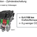 A través de la desactivación del segundo y el tercer cilindro en condiciones de carga baja y media, se reduce el consumo en aproximadamente 0,4 l/100 km. A una velocidad constante de 50 km/h en la tercera o la cuarta marcha, el consumo se reduce incluso hasta 1,0 l/100 km.