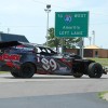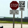 Algo que nos llama la atención al llegar a las poblaciones, es una cifra que hay bajo el nombre del pueblo, resultando ser la cifra de habitantes censados en cada población, lo que no sabemos es cada cuanto tiempo renovaran estos carteles, algunos de ellos seriamente dañados por la corrosión y el paso del tiempo. La “hora de tener hambre” nos cogió en Bloomington, lugar donde tuvimos nuestro primer “contacto” con la policía, al estar buscando un restaurante donde comer, y tras meternos de manera equivocada en un parking, yo volví a salir a la calle que nos había llevado hasta allí, sin darme cuenta de que esta era de una sola dirección, encontrándome de frente con un buen número de coches y, Ley de Murphy, uno de ellos de la policía, que antes de darme tiempo a parpadear ya tenía encendida toda la parafernalia de luces y sirenas. Tras pararme en cuanto pude, con la mano izquierda indicándome que me quedara donde estaba y la derecha junto al revolver me pidió la documentación y no se si mi cara de susto, o el hecho de llevar el carnet de conducir internacional recién sacado más el hecho de que al meter mis datos en su ordenador no saliese nada, o todas esas cosas juntas más mi continuo pedir perdón y decirle que no me había dado cuenta, el caso es que todo quedo en una recomendación de conducir con seguridad y seguir con cuidado. Casi no me lo podía creer.