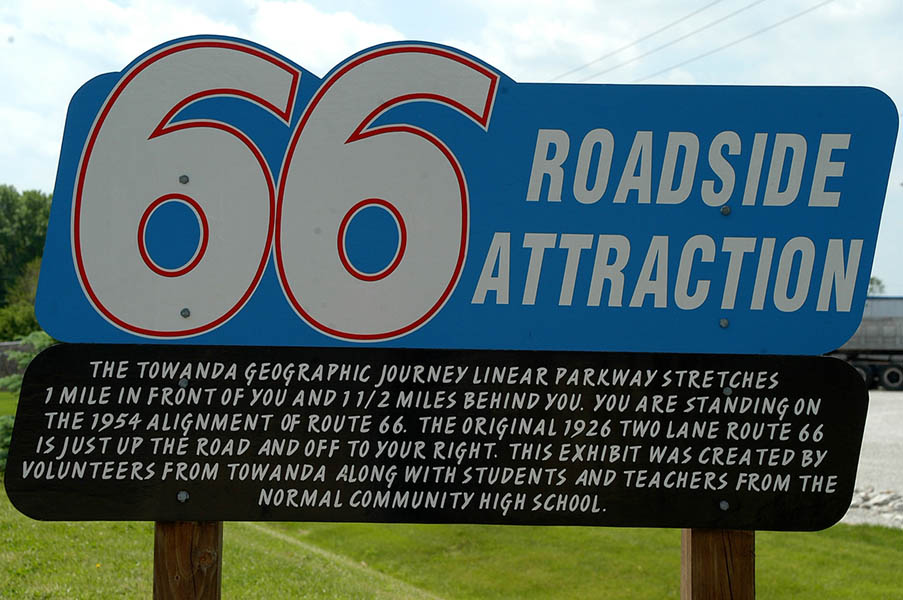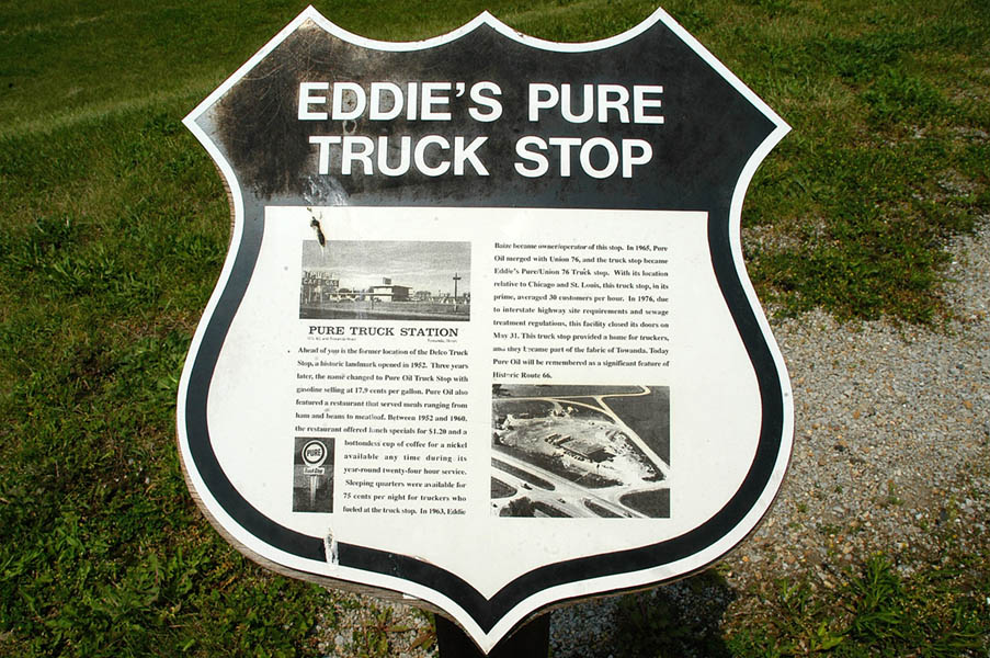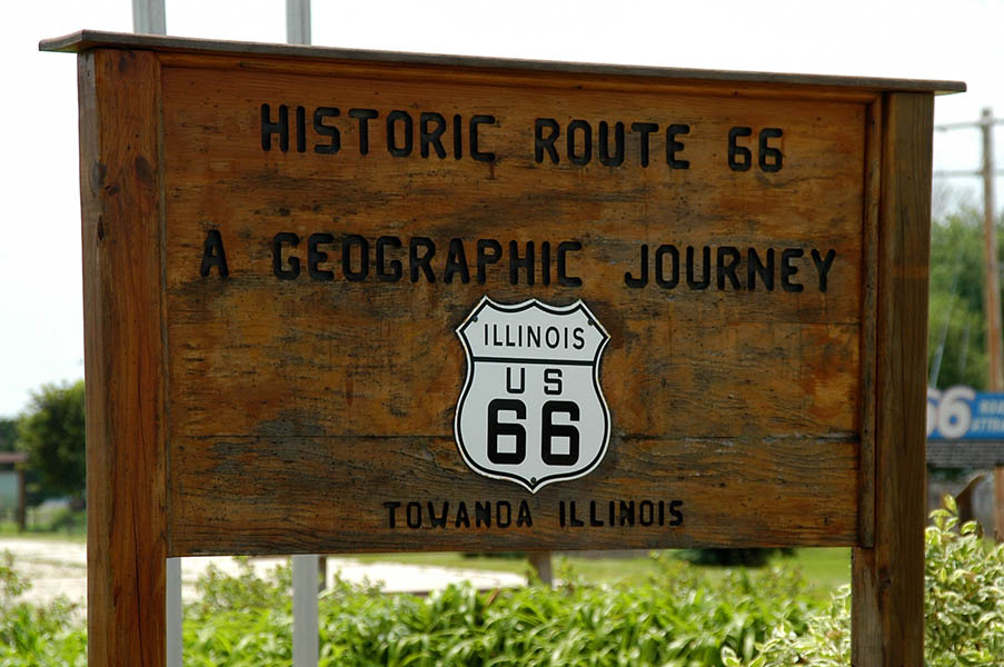 Chenoa a parte de una cantante, es el nombre de uno de los pueblos que nos encontramos en el camino, poco antes de Towanda, otro pequeño pueblo en el que paramos a hacernos unas cuantas fotos junto a los carteles, placas y banderas sobre la Ruta 66 que voluntarios, estudiantes y profesores de la población han colocado en su vía principal. Esto es algo que encontraremos a lo largo de todo el viaje, zonas en que se hace referencia de manera destacada a la vieja ruta y zonas, en las que esta se ha sumido en el más total de los abandonos, dependiendo en gran medida de las diferentes asociaciones y clubs de amigos de la Ruta 66, existentes en todo el país.