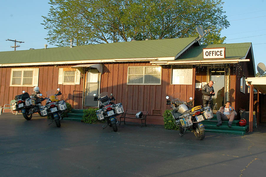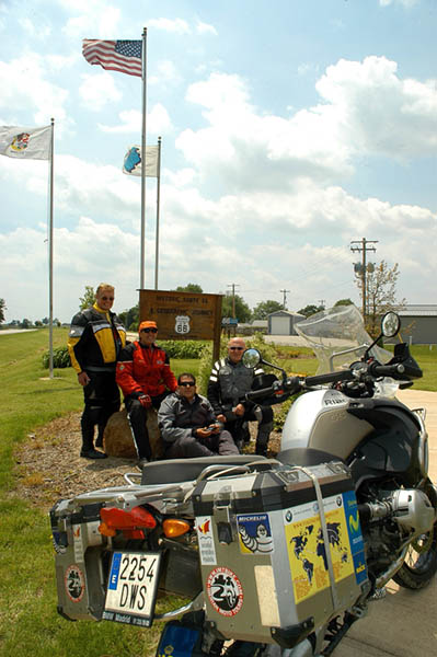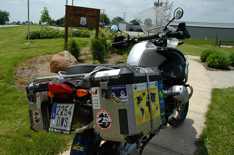 Con todos de acuerdo y tras recoger las motos del concesionario BMW de Chicago, el viernes, 26 de mayo, tras un potente desayuno y con una montaña de ilusión, daba comienzo la primera etapa de nuestro viaje. Aunque amaneció nublado, no afectó al entusiasmo de vernos junto a tan soberbias motos y a punto de iniciar la excitante aventura, por lo que enseguida cogimos la 45 sur, después la 290 oeste, para por fin, coger la Interestatal 55 sur hasta Joliet. Hasta ese momento, una pequeña colección de peajes y las continuas consultas a los mapas para no perdernos habían controlado nuestro tiempo, pero a partir de aquí, el tráfico se fue diluyendo y poco a poco, el campo y los espacios abiertos reemplazaron a los edificios, fábricas y centros comerciales.