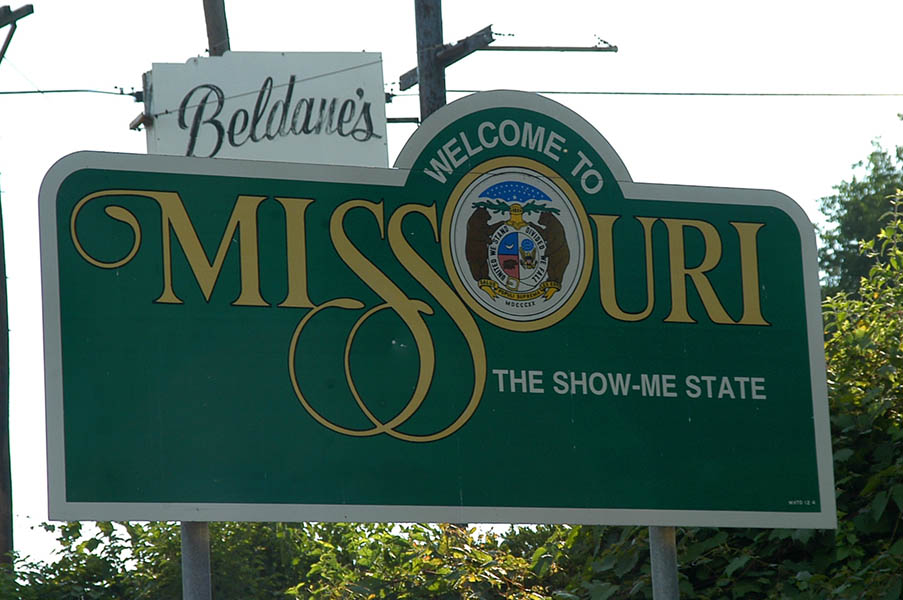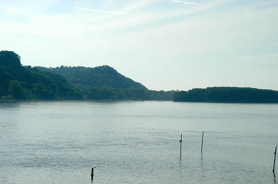 Tras comer, por fin, en un restaurante cercano al lugar del susto, seguimos, cogiendo otra vez la autopista 55. Largas rectas y verdes campos nos acompañan hasta llegar a Springfield (Illinois), y hago bien en nombrar el estado porque Springfield hay unos cuantos en América, no se si uno por estado pero casi y nadie supo decirme cual era el de los Simpson, el caso es que en esta población, nos desviamos por la Interestatal 72 oeste hacia Jacksonville, para poco después coger la 54 oeste y llagar a nuestro primer cruce de estados, dejando atrás Illinois para pasar a Missouri, limite fronterizo que viene marcado por el río Mississippi.