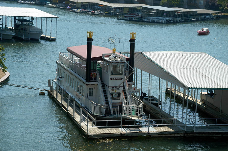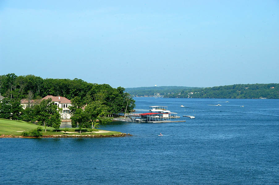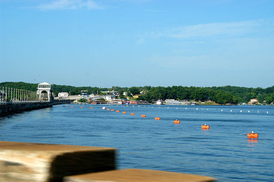 Tras salir de Jefferson City continuamos por la 54 oeste y paramos a desayunar en el Lago Ozarks, junto a Camdenton, en un lujoso y por la pinta carísimo complejo que le gustaba a nuestro compañero Bob y donde realmente desayunamos de lujo con vistas al famoso lago, tras lo cual continuamos camino comprobando como el paisaje se iba volviendo cada vez mas verde, sin llegar a montañoso, las grandes planicies van dejando paso a pequeños montes y elevaciones del terreno que lo hacen más agradable a la vista.