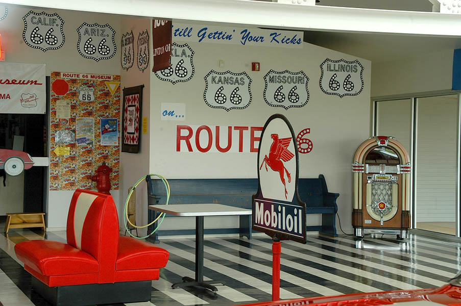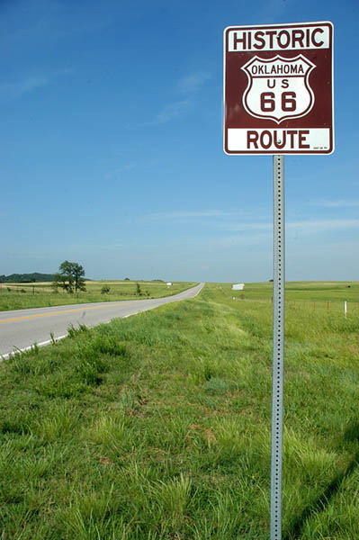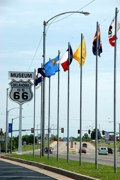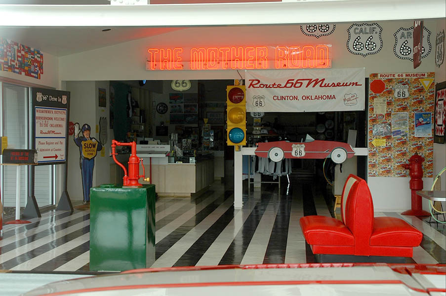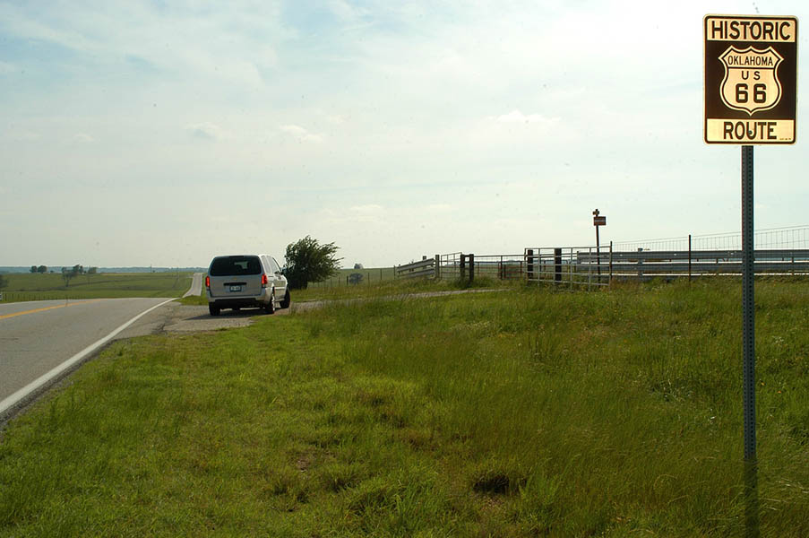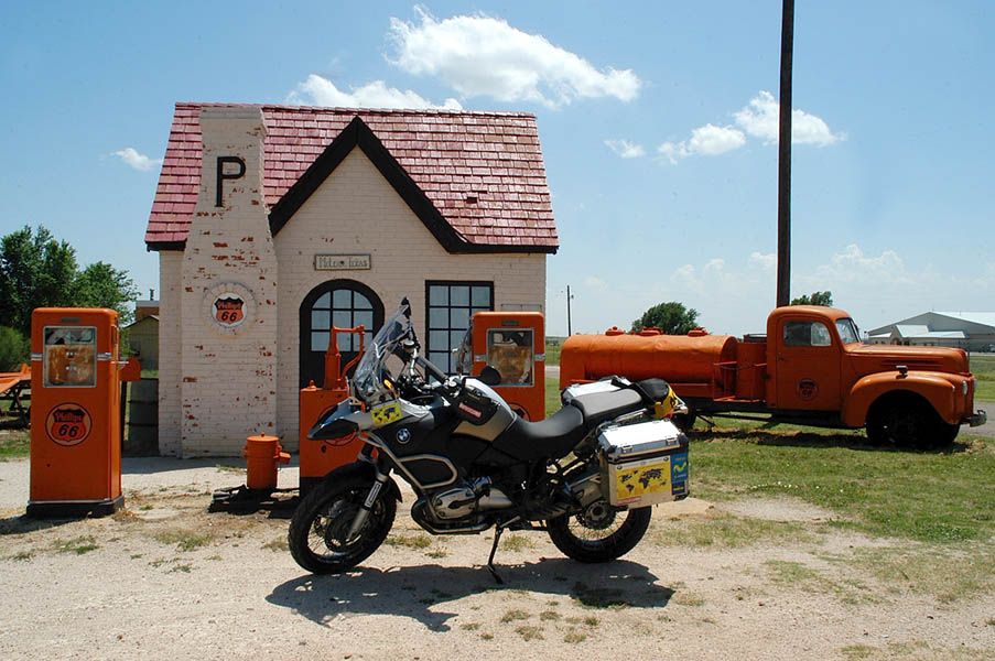 En las inmediaciones de Oklahoma City, cogemos la Interestatal 35 sur para enlazar con la Interestatal 40 oeste en dirección a Clinton donde se encuentra no el único pues hay bastantes, pero sí el más completo museo de la Ruta 66, donde realizamos las inevitables fotos de rigor y tras redesayunar, continuamos por la 40 para, pasado Sayre, entrar en el estado de Texas; en esta parte de la ruta, en lugares donde la vieja 66 a desaparecido devorada por la autopista, se sigue utilizando como vía de servicio.
