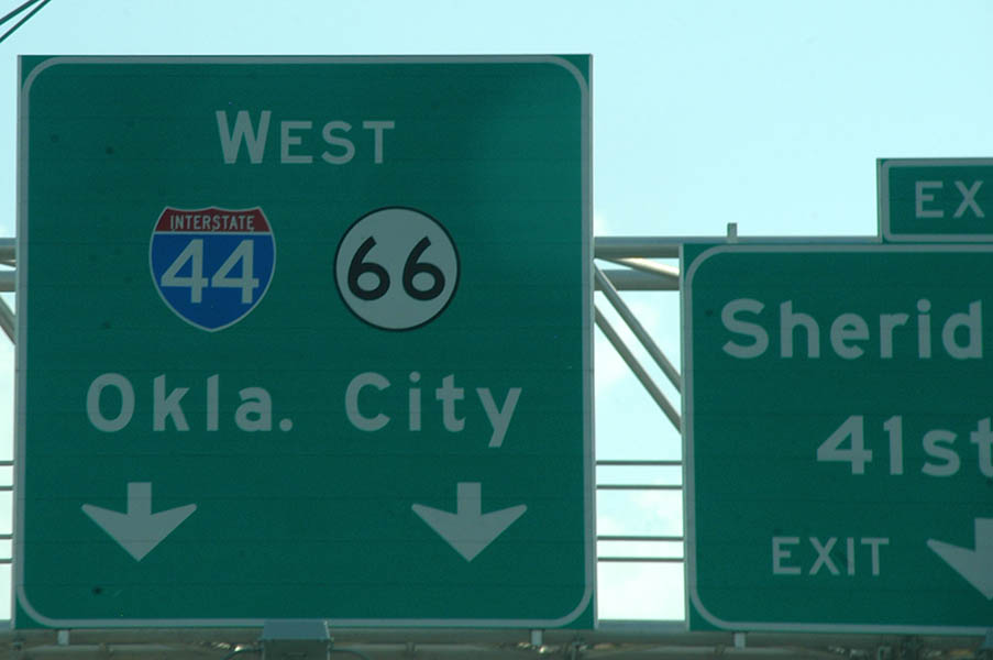 Tras volver a coger la autopista, en esta ocasión la Interestatal 44, nos damos cuenta de la cantidad de animales muertos que hay en los arcenes y del tipo de animales que son, zorros, tortugas, armadillos que cruzan las autopistas continuamente y que te los puedes encontrar en cualquier momento. Por la 44 llegamos hasta Tulsa donde vemos como el río Arkansas que la atraviesa está totalmente seco, a partir de esta ciudad y durante un buen rato, la Interestatal 44 y la Ruta 66 son la misma carretera, justo pasado Tulsa también, encontramos el primer límite de velocidad de 75 millas por hora, algo que por suerte cada vez se va viendo más y que permite circular a un ritmo algo más ágil cercano a los 120 Km./h., mejor que los poco más de 90 km./h. De los hasta ahora mucho más frecuentes límites de 60 millas. Sobre todo porque aquí, como te cojan un poco pasado de velocidad, aparte de la considerable multa, en alguno estados hasta te detienen.