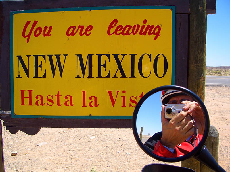 Seguimos dirección oeste y tras atravesar la frontera con Nuevo México, paramos en la oficina de información que hay junto a la autopista para pedir información, hacernos unas fotos, reservar habitación en Tucumcari y atrasar el reloj una hora para entrar en el horario central (siete de diferencia respecto a España en Chicago, ocho en Nuevo México).