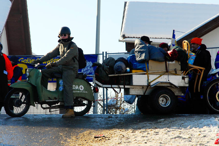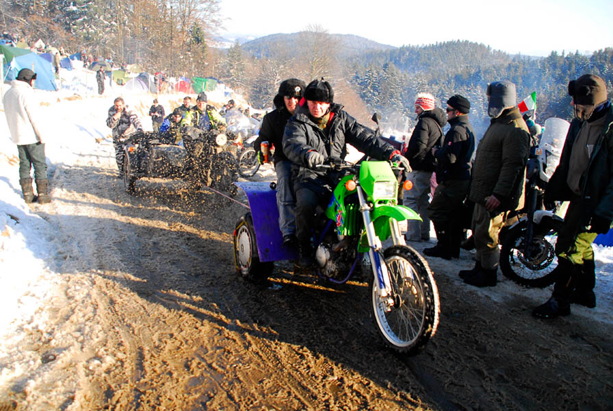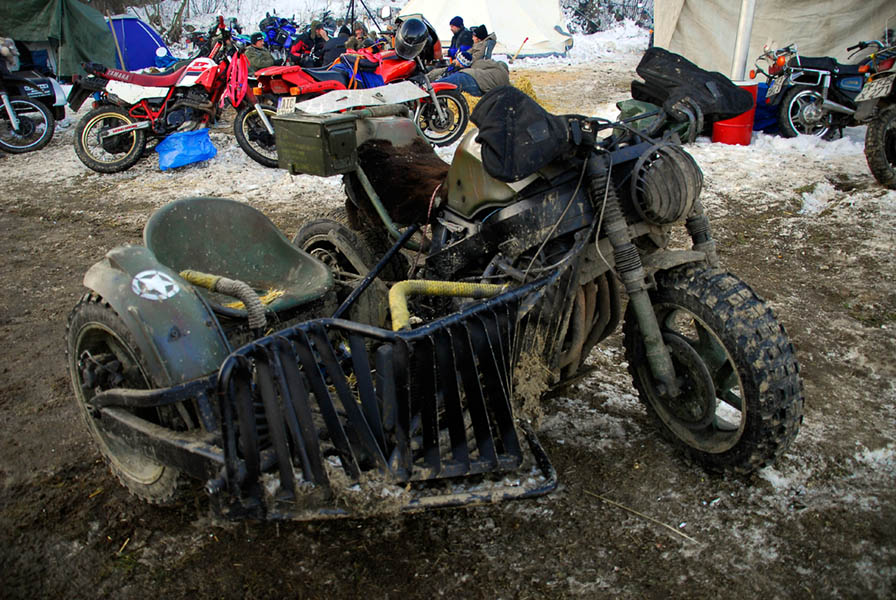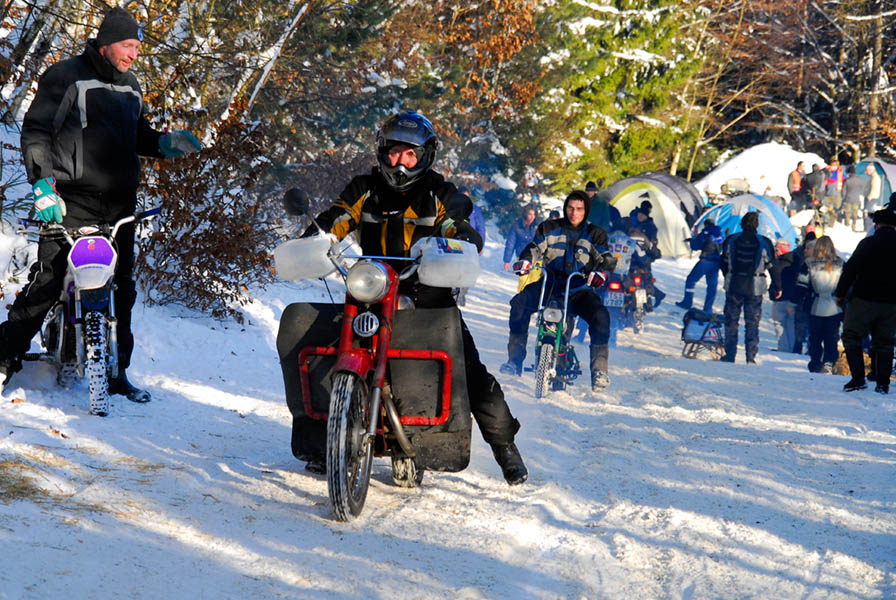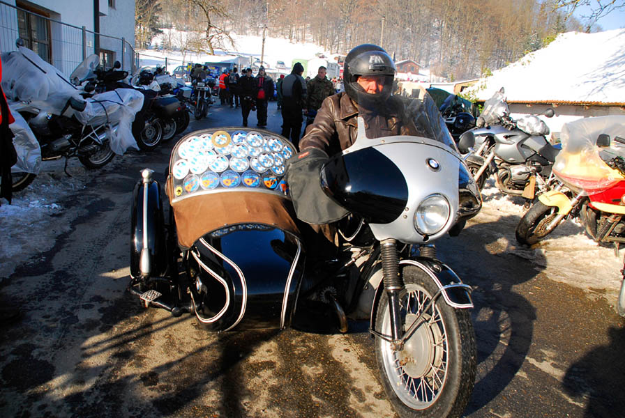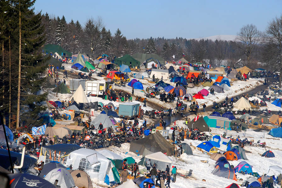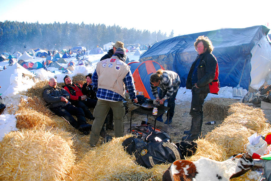 Algo que no ha cambiado en esta concentración son sus motos y los moteros que las montan, en el caso de los últimos, mucho “pureta” de cuero, jersey de lana, piel de cualquier tipo, millones de viejos parches en chupa y/o pantalones… Y en cuanto a las primeras, pues que este es el reino de los sides, de los que puedes encontrar de todas marcas, formas, tamaños y antigüedades, y respecto a esto último que el significado antiguo, aquí carece de cualquier valor, y que las viejas Zundapp KS 601 de la Segunda Guerra Mundial y que dieron nombre a esta concentración siguen llegando aquí año tras año, junto a las Jawa, MZ, BMW Guerra y cualquier viejo cacharro que te puedas imaginar. De igual manera, los inventos para protegerse del frío son para todos los gustos y los skys en algunas motos y especialmente las cadenas para poder transitar por el interior de la zona (y mucho años simplemente para poder llagar hasta la concentración) son más que habituales.