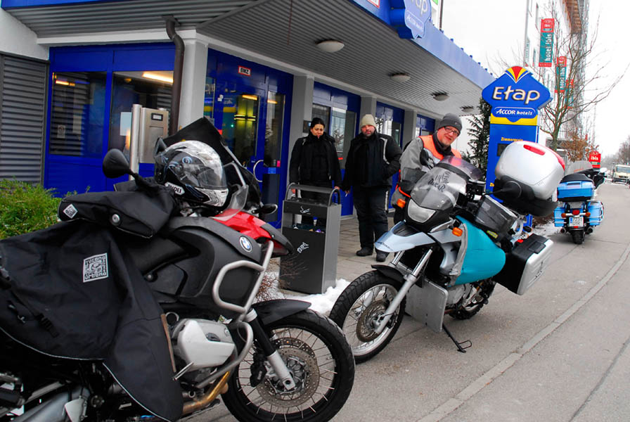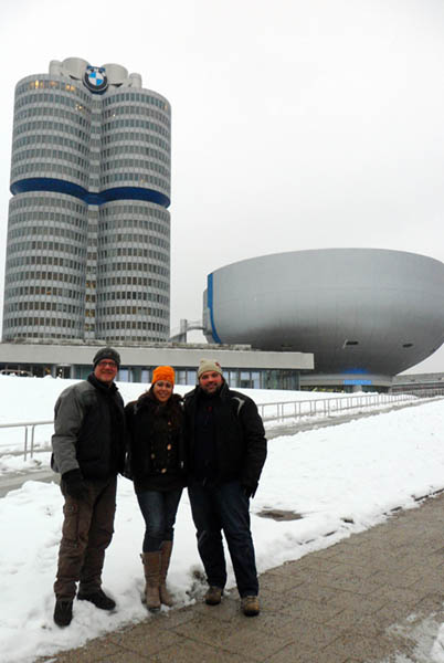 El jueves nos levantamos animados y con ganas de poder llegar a Munich, como el viaje se nos iba dando bien, la idea era llegar cuanto antes para poder hacer un poco de turismo por la ciudad. Tras cruzar la frontera alemana, pasamos por Friburgo y en Karlsruhe giramos a la derecha dirección Stuttgart, donde nos empezó a nevar y tras pasar por Augsburg, llegamos a Munich, sin que hubiera dejado de caer el blanco elemento, por suerte todas las carreteras las habíamos encontrado limpias y gracias al GPS, llegamos del tirón al Etap que habíamos elegido para pasar esa noche, habíamos hecho 470 Km. y era la hora de la comida, por lo que nos cambiamos rápidamente y cogimos un taxi que nos llevó hacia el centro donde nos pegamos una buena comida en un restaurante típico, después, otro taxi nos llevó al museo BMW y finalmente nos dirigimos a la cervecería más famosa de Alemania, Hofbräuhaus, fundada en el año 1589 en la que nos dimos un nuevo homenaje a base de jarras de cerveza de litro y comida típica, del resto no me acuerdo.