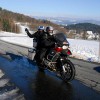 Todos los apaños aguantaron sin inmutarse los Km., la lluvia y la nieve que nos cayó a lo largo de todo el viaje y el costo total fue de los pocos € de la cinta adhesiva y las bridas.