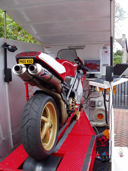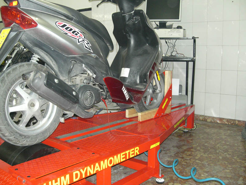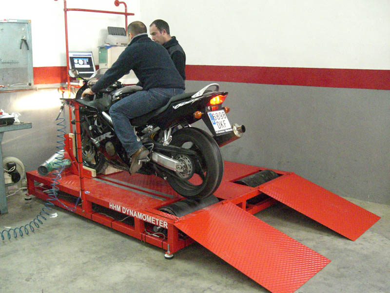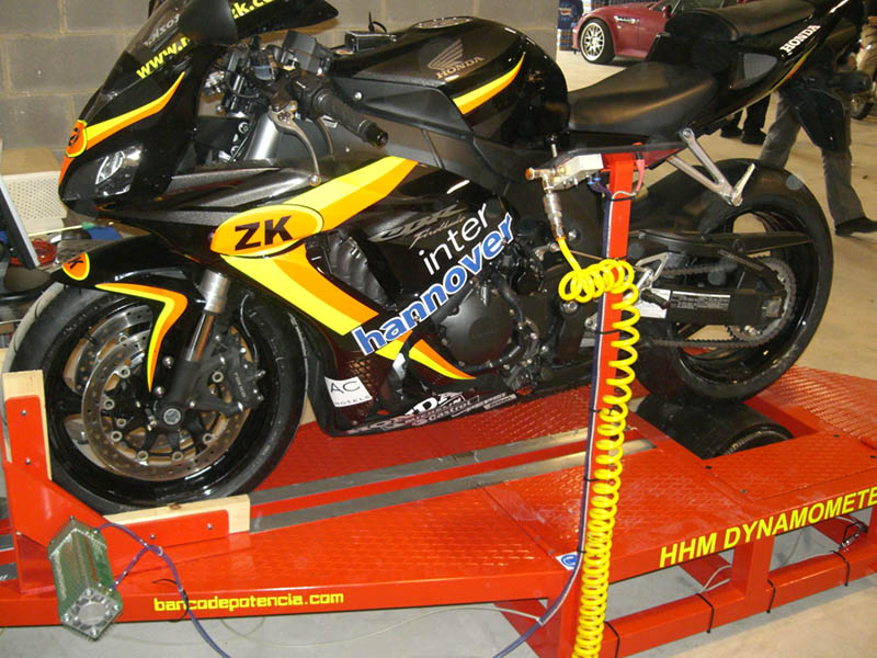 Además, y como puedes imaginar, no todas las normas de los diferentes países siguen las mismas pautas, por lo que encontramos aquí una nueva fuente de diferencias entre bancos de potencia. ¿Empiezas a entender ahora por que las motos japonesas anuncian siempre unas potencias que casi nunca alcanzan una vez probadas en Europa? Los bancos japoneses son diferentes, pero además las tácticas de los fabricantes muy “especiales”. Así, para homologar la potencia de un nuevo modelo, se sirven de montar ese motor a ensayar de manera casi artesanal, perfeccionando los ajustes, para conseguir el equilibrado ideal del mismo. Le ponen un aceite de muy baja viscosidad y en muy poca cantidad, buscando minimizar el rozamiento y la potencia perdida. Luego, una vez en el banco de homologación, ya solo queda hacer un ensayo a una temperatura a la que jamás te atreverías a abrir el gas a fondo de tu amada moto, ¡y ya está!, obtienen esos 10-12 caballos que por ejemplo siempre faltan en las motos de 600 c.c. niponas.