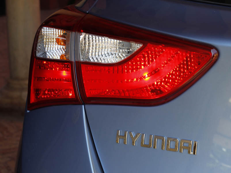 El impacto visual aumenta asimismo por las luces diurnas que flanquean la rejilla y por los faros HID. El nuevo modelo incorpora también un rasgo distintivo de Hyundai en la parte delantera: la rejilla del radiador de forma hexagonal, con posibilidad de elegir entre barras horizontales cromadas sencillas o dobles.