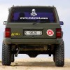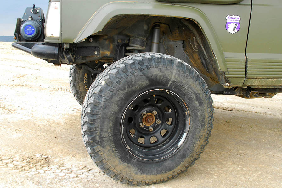 El contacto con el suelo y la buena tracción se aseguraron a través de unos BF Goodrich Mud Terrain en medidas 255/85×16, montados sobre unas llantas de acero 8×16 con Staun Beadlock, un sistema antidesllantamiento que consiste en instalar una cámara “staun beadlock” dentro el neumático, que ejerce presión entre la llanta y el neumático haciendo el desllantamiento mucho más difícil.