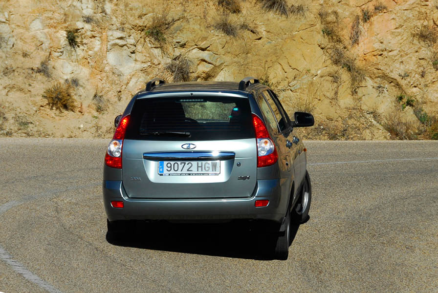 No nos vamos a engañar, no estamos ante el último grito de diseño italiano, y la línea del coche es la que corresponde a un familiar clásico, si bien hay que reconocer que las formas están bien solucionadas y resultan agradables a la vista, especialmente las vistas trasera y de tres cuartos traseros, en que se aprecia su bien resuelto portón, integrado en el parachoques (del mismo color que la carrocería), con una línea de carga baja, así como sus grupos ópticos traseros, integrados en el pilar D para no entorpecer el espacio de entrada de la carga y las barras de techo, que le favorecen desde cualquier ángulo. De frente resulta discreto, con unas líneas que recuerdan al antiguo Ford Mondeo y en el que destacan los faros antiniebla integrados en la rejilla inferior. Lo que “no tiene perdón de Dios”, son las ridículas llantas, con un offset tan positivo que quedan literalmente “escondidas” bajo los pasos de rueda. Si aún manteniendo la medida del neumático actual (185/65-14), se le montasen unas llantas que sobresaliesen un par o tres centímetros más, el coche ganaría muchos enteros estéticamente, además de aumentar el ancho de vías 4-6 cm. que siempre viene bien para mejorar el comportamiento.