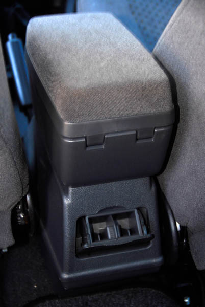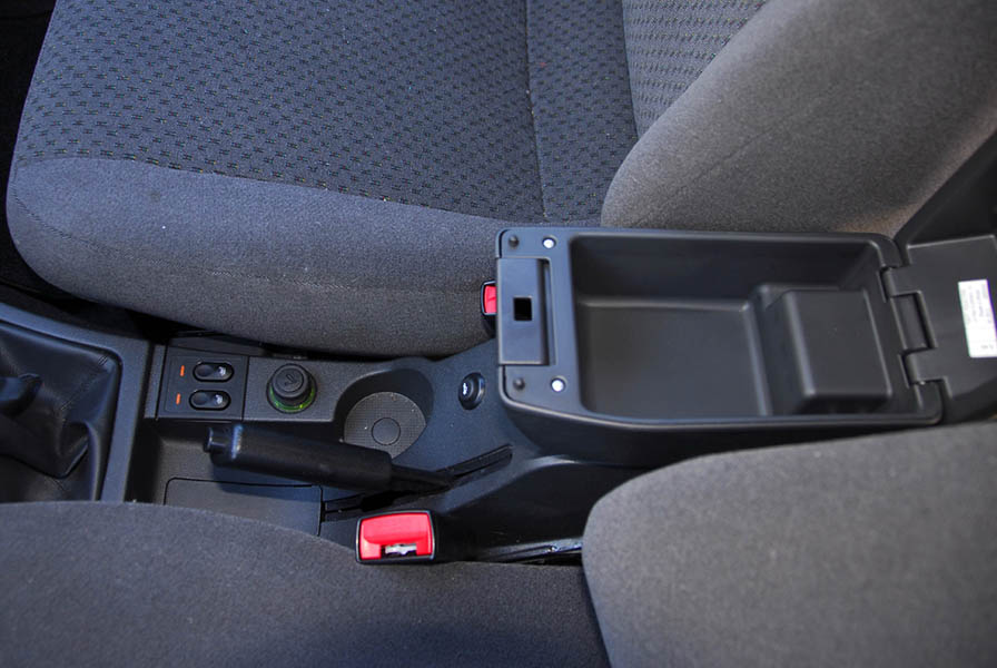 El apoyabrazos está bastante bien situado, dispone de una doble trampilla porta objetos, la superior de un tamaño decente y la inferior realmente pequeña y que permite alojar exclusivamente objetos de muy pequeño tamaño.