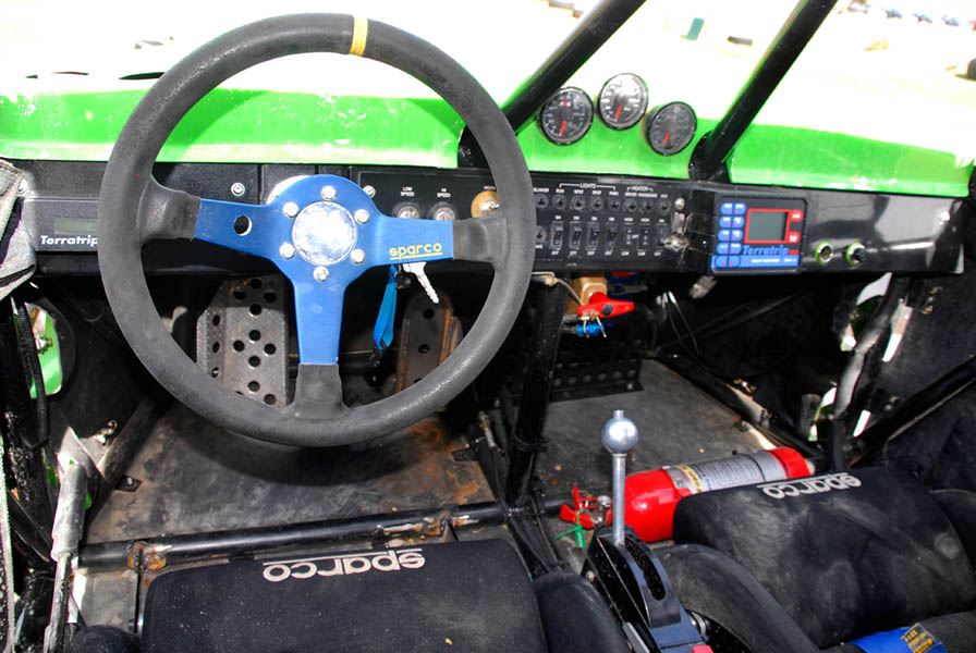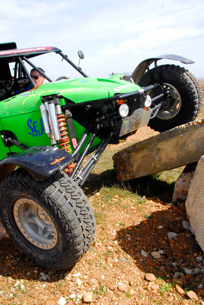 Previamente Carlos Rentero, su piloto, que en esta ocasión demostró su valentía al hacer de copiloto mío, .-“es casi imposible hacerle volcar…”, me explicó la necesidad de cambiar el chip a la hora de conducir el Predator, tanto por las capacidades del coche (siempre frenas pronto), como por su particular comportamiento, y él mismo reconocía que a pesar de los más de 2000 Km. recorridos con el coche, aún le queda para sacarle todo el partido.