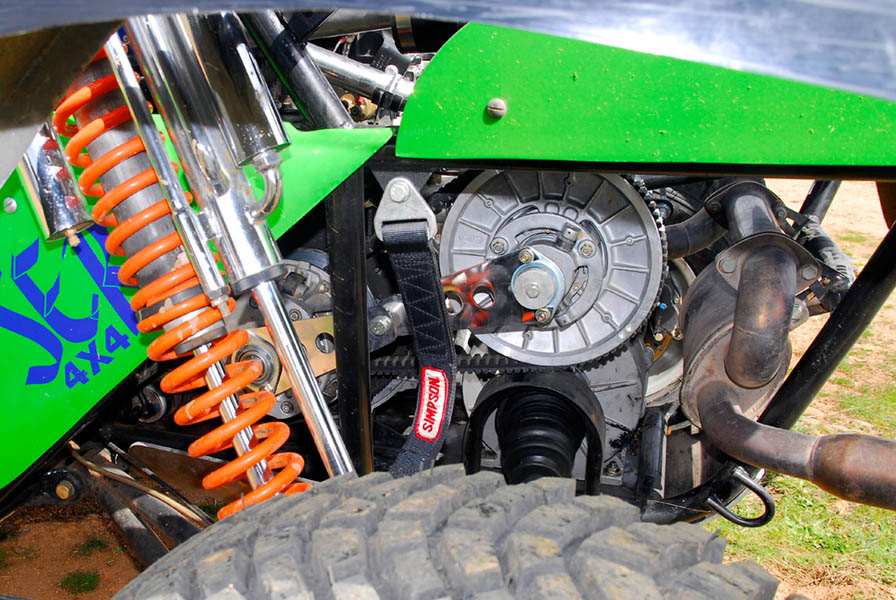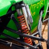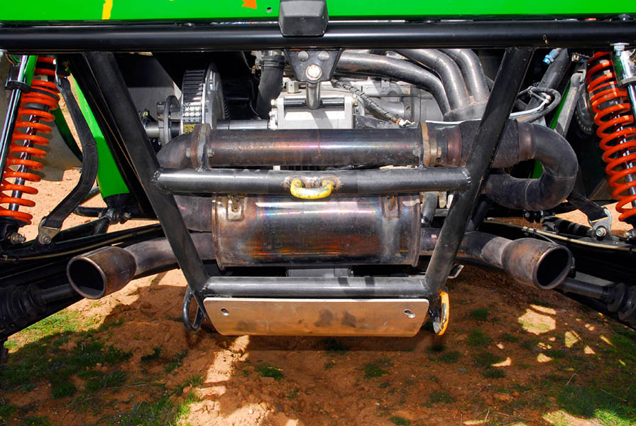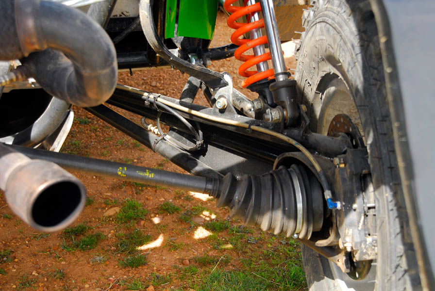 El cambio es automático CVT con la correa del variador de Kevlar, para aguantar el más duro trato y la tracción es a las dos ruedas traseras a través de un diferencial “mondo y lirondo”. Sin tracción 4×4, sin reductoras, sin bloqueos… es lo primero que te viene a la mente cuando te lo cuentan, y esto es así porque no piensas en la otra lectura: 150 CV, 1010 Kg. de peso, velocidad máxima 130 Km./h.. No está hecho para trialear, sino para volar por encima de lo que te encuentres.