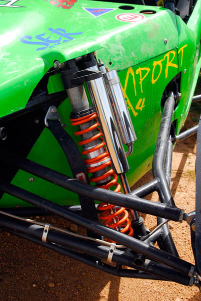 Partiendo de un chasis multitubular, de una sección suficiente como para poder lucir la “S” de Score en su denominación (el equivalente a la homologación FIA en Europa), al Predator se le han colocado unas suspensiones listas para “comérselo todo”, y delante podemos ver un doble trapecio cuyos brazos traseros van, prácticamente paralelos a la carrocería hacia atrás, esto asegura, que en el caso de encontrarnos alguna piedra o zanja “escondida” y por mucho que podamos llegar a hacer tope de suspensión, estos lo van a soportar sin doblarse. Detrás, contamos con un doble basculante, también tubular, listo para soportar el mismo tipo de “acción”.