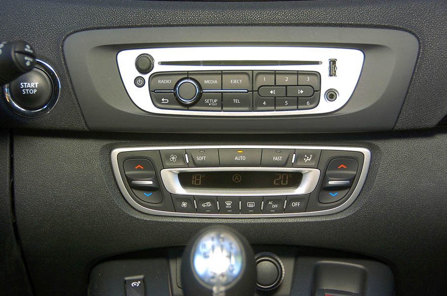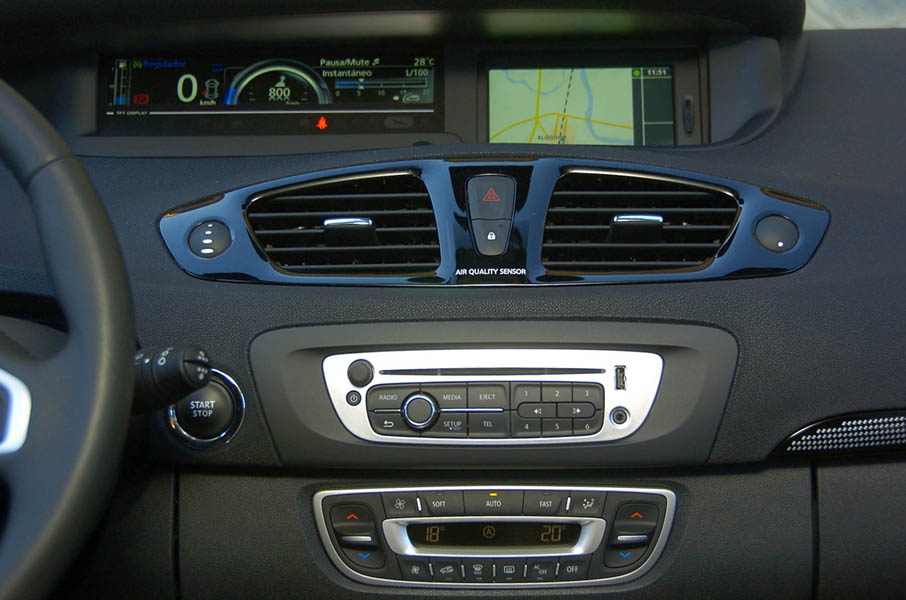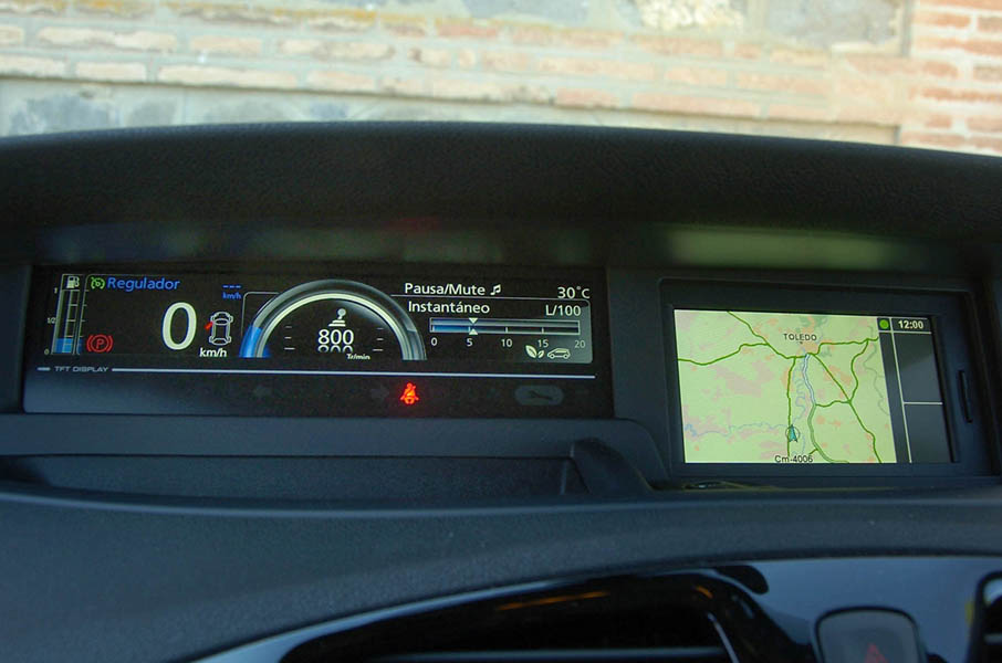 Vemos nuevas tapicerías y nuevos cromados que aumentan la calidad de acabado interior del coche, resultando esta de buena calidad tanto aparente como de ajustes. Se introducen nuevos pictogramas en la pantalla TFT y se añade nueva tecnología útil para el conductor. Se incluye la conexión manos libres Bluetooh en todas las versiones así como la opción del equipo de sonido Bose con 9 altavoces y el navegador Carminat con pantalla integrada en el salpicadero. La zona central del salpicadero, por debajo de los aireadores centrales y por encima de la palanca de cambios, incorpora los mandos del equipo de sonido y los del climatizador