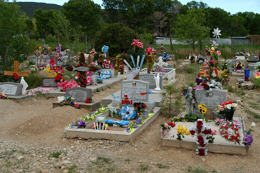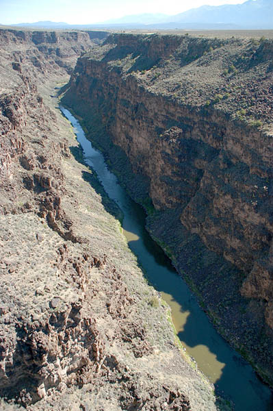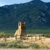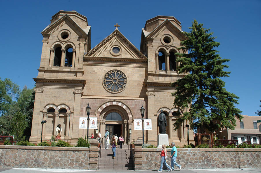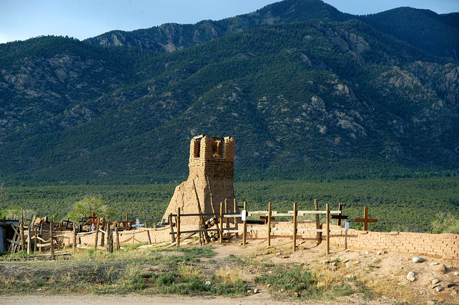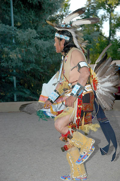 El caso es que dejábamos atrás las inmensas llanuras, con sus rectas inacabables y a lo lejos se dibujaba la silueta de las Rocky Mountains, las Montañas Rocosas, donde empezaría la parte más bonita del viaje. La carretera se elevaba gradualmente hacia el oeste, buscando las faldas de las Rocosas, cuyos picos nevados aparecían en la distancia. La temperatura bajaba con la misma rapidez que la carretera subía y tras pasar de refilón por el pueblo de Las Vegas y pasar por el famoso río Pecos de las películas del oeste, llegamos a Santa Fe. Esta ciudad es una bonita mezcla de arquitectura colonial española e india, con sus famosas casas de adobe y paja; paramos a comer en un bonito restaurante con un patio de aspecto andaluz, paseamos por el pueblo admirando su particular arquitectura y continuamos hasta Taos, donde visitamos su poblado indio, cenamos en el famoso restaurante de un famoso chef, donde nos dieron un “palo” no tan famoso pero igual de importante y nos quedamos a pasar la noche no sin antes ver un espectáculo realizado por los indios del poblado. Hoy hemos realizado 586 Km. la mayoría de ellos por carretera de curvas, no esta mal.