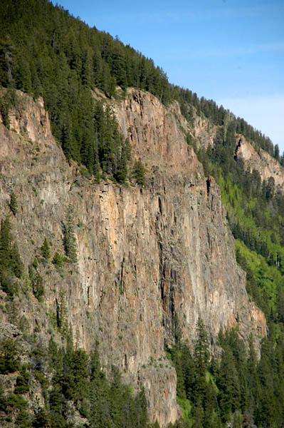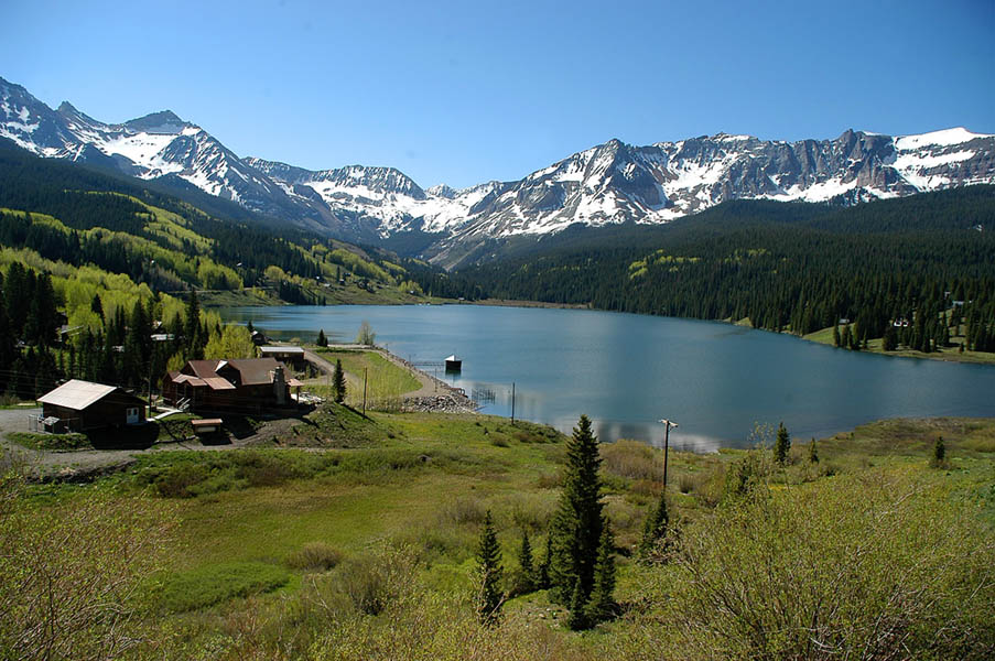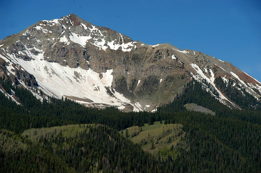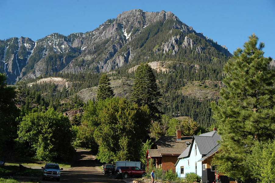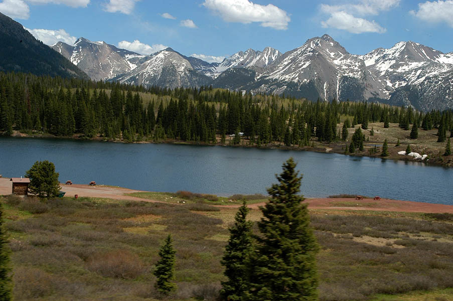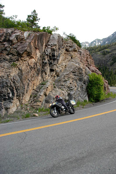El martes 30 será uno de esos días para realizar un montón de paradas fotográficas, por carreteras de miles de curvas llegamos a la frontera del estado de Colorado bordeando toda la zona sur de las rocosas, las imágenes son de postal, y casi a cada curva aparece un paisaje más bonito que el anterior, luciendo toda la gama de verdes y ocres mezclandose con el blanco de las zonas nevadas. En los alrededores de Silverton y Ouray la divertida carretera de curvas llega a rondar los 4000 mts. de altitud y la nieve en algunas zonas tiene hasta varios metros de espesor al mismo lado de la carretera. Para que os hagáis una idea, a la carretera que sube desde Durango a Ouray, dentro del Bosque Nacional de San Juan (uno de los muchos bosques que conforman las rocosas), la llaman la carretera del “millón de dólares”, y los moteros del lugar saben bien porqué; por cierto, aquí los motoristas se saludan siempre, una sana costumbre que desgraciadamente se está perdiendo en España.