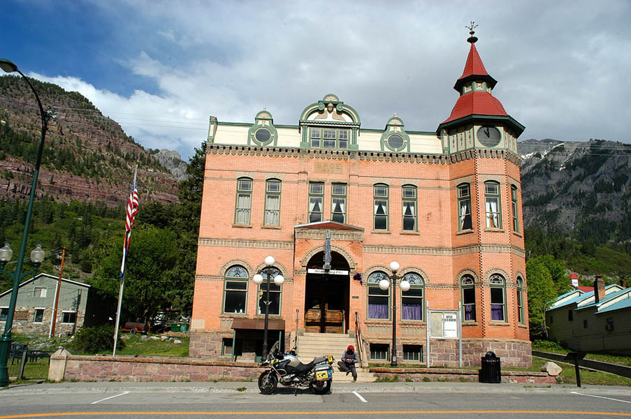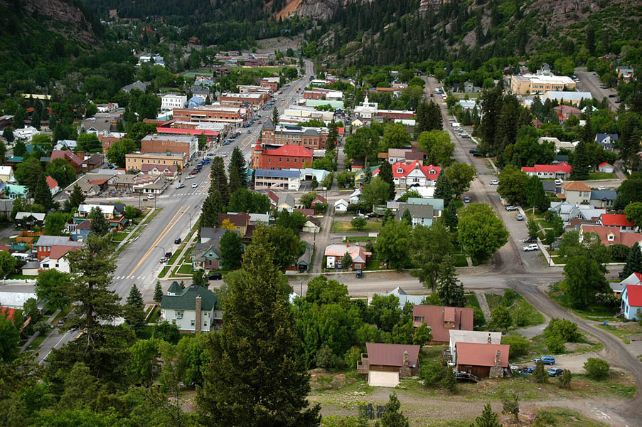 Tras comer en Silverton, un precioso pueblo encajonado en un valle entre altas montañas, seguimos camino y tras pasar el Red Mountain Pass y siguiendo el curso del misterioso río Animas, la carretera inició el descenso hacia Ouray, situada en un valle idílico, que parece traído de Suiza. Rodeada de altas montañas y con numerosos manantiales de aguas termales, Ouray es muy acogedora. Nuestro hotel tenía baños termales, piscina exterior de agua caliente y masaje, por lo que en sus aguas a 44ºC todo el grupo aprovechamos para darnos un completo relax tras los 582 Km. que habíamos hecho hoy.