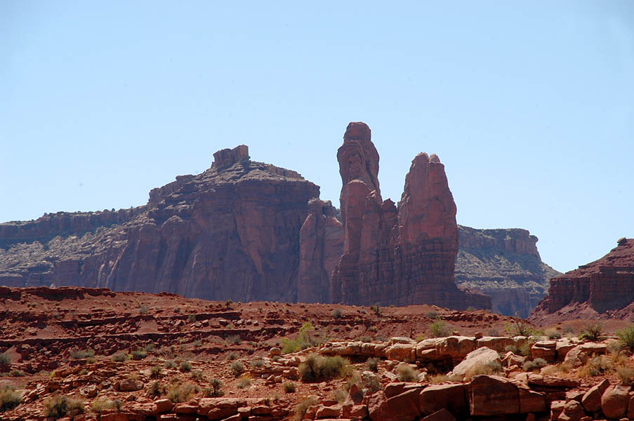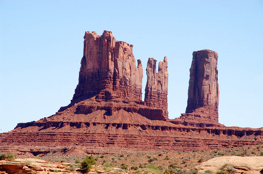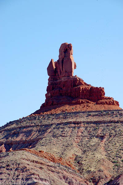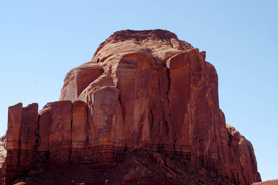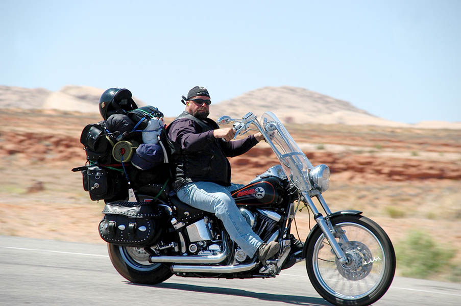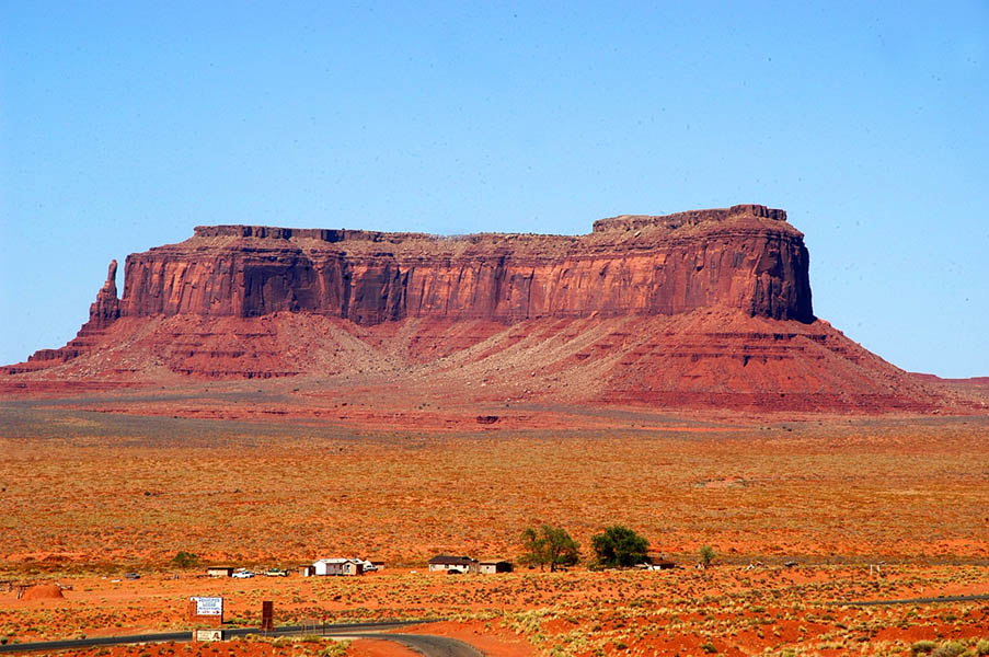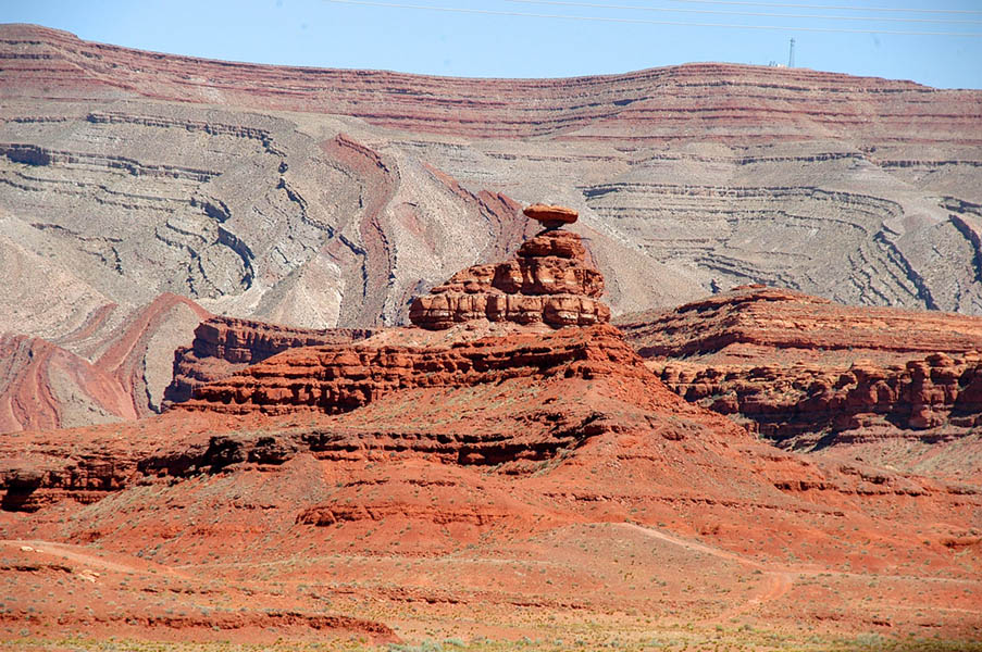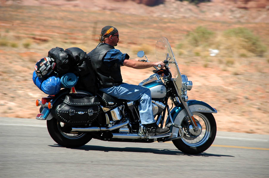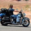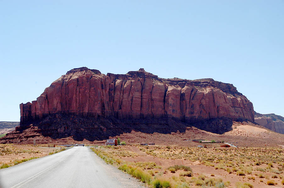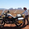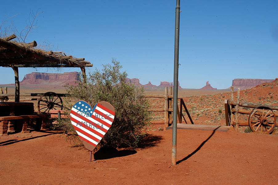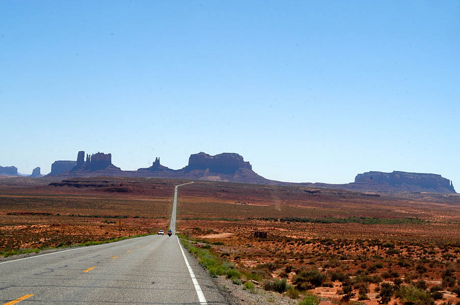 El mismo policía nos indica que la mejor ruta para ver el Monument Valley era girar a la derecha en la siguiente carretera para, entrando en el estado de Utah, coger la carretera 163 que nos llevaría por los mejores paisajes. Pocos coches, muchos harlystas sin casco (en muchos estados no es obligatorio) y un paisaje en el que realmente es fácil imaginar a los vaqueros a lomos de sus caballos atravesando las amplísimas extensiones de tierra y desierto. Las caprichosas formas de las rocas llevaron a este lugar a ser llamado por los indios como el valle de los dioses. Tras muchas fotos antes de llegar, llegamos con un calor agobiante y comimos en Gouldings, donde además de visitar su museo se poseen las mejores vistas de todo el Monument Valley.