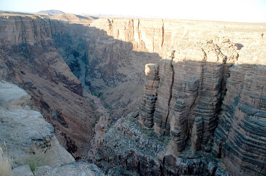 Volvemos a entrar en Arizona y paramos en Tuba City para repostar y lavar un poco las motos, tras lo cual seguimos hasta Cameron, donde nos desviaríamos hacia la derecha en dirección al Cañón del Colorado, que no está en Colorado, sino en Arizona, su nombre le viene por el río que le recorre por el fondo. Tras parar a hacer unas fotos en Little Canyon, llegamos ya de noche al Grand Canyon Village, en la zona sur del Gran Cañón, un pueblo que ha crecido a la sombra del turismo de tan majestuoso lugar, la única formación geológica visible desde la luna, según dicen. Tras despistarnos, y no lograr ponernos en contacto unos con otros (en el país más poderoso del mundo la telefonía móvil funciona bastante peor que en España), Mar y yo buscamos un hotel, algo que según nos dijeron después, logramos por los pelos, pues estaban todos completos, y tras cenar nos fuimos a descansar, el cuentakilómetros parcial indicaba 718 Km., haciendo de ésta, la etapa más larga del viaje. El día siguiente lo dedicaríamos a ver y fotografiar desde todos sus ángulos esta maravillosa formación geológica, pero para saber más, deberéis de esperar al próximo capitulo. Realmente merece la pena.