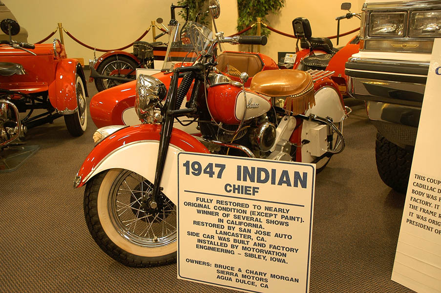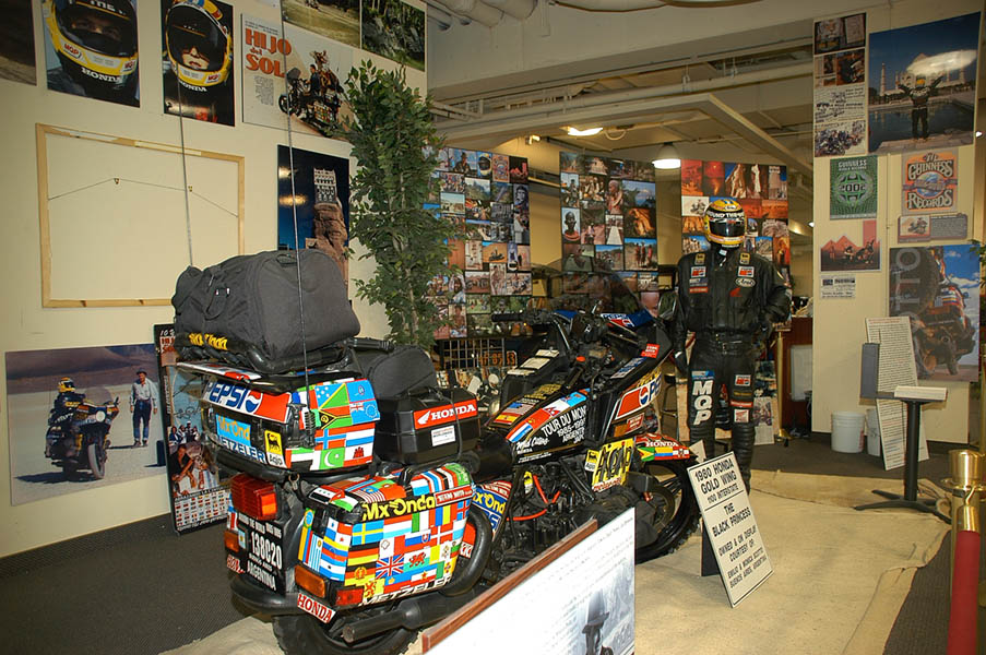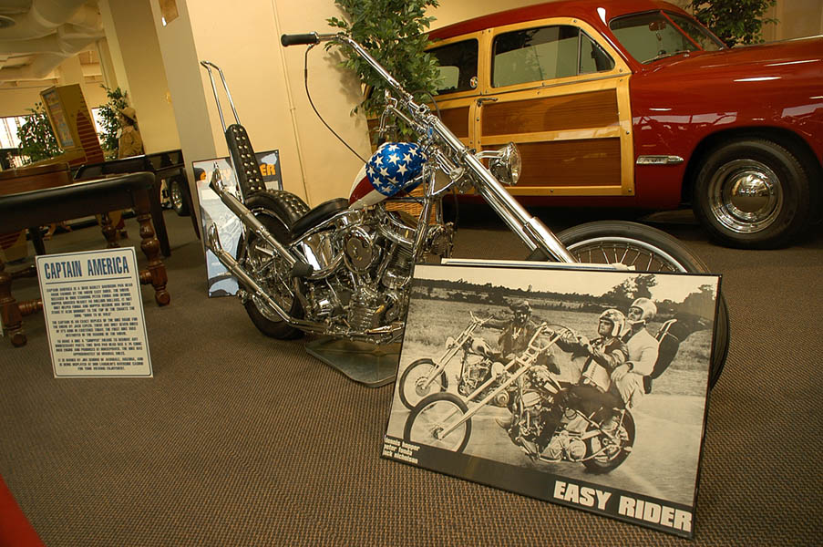Desde Kingman, el camino recto para llegar a Las Vegas es coger la 93, pero tras hacer una llamada a Emilio Scotto, quien realizó el más grande viaje alrededor del mundo en moto, a lomos de una Honda Gold Wing 1100 Interstate, a lo largo de más de 10 años y recorriendo 485000 millas, decidimos seguir hacia el oeste en dirección a Laughlin, al que llegamos tras cruzar el río Colorado y pasar al estado de Nevada, donde en el hotel casino Lauglin´s Riversade Casino se encuentra un museo en el que está expuesta la “Princesa Negra”, como el llamaba a su moto, junto a un montón de fotografías y recuerdos de su monumental viaje. La verdad es que solo por esto ya merecería la pena visitar este sitio, pero es que además, las motos y coches que este museo posee, son autenticas joyas de la historia de la automoción americana, por lo que la visita es aún más recomendable. Entre todas ellas cabe destacar una replica exacta de la “Capitán América”, la Harley Davidson Pan Head del 49, fabricada para la película Easy Rider protagonizada por Dennis Hopper y Peter Fonda en el año 69, película que hizo famoso el tema “Born to be wild”, la moto original se destruyó durante la grabación de la película.