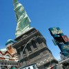 Con un calor que comenzaba a ser achicharrante, salimos hacia Las Vegas. Lo primero que impresiona es ver esta inmensa ciudad en medio del desierto, lo siguiente, los gigantescos hoteles que flanquean toda la avenida principal, como ejemplo, el nuestro, el MGM, al que tras llegar y ver que había alrededor de 20 puestos de recepcionista, le pregunté al nuestro que cuantas habitaciones tenía el hotel, su respuesta me dejó sentado: ¡¡¡5000!!!.