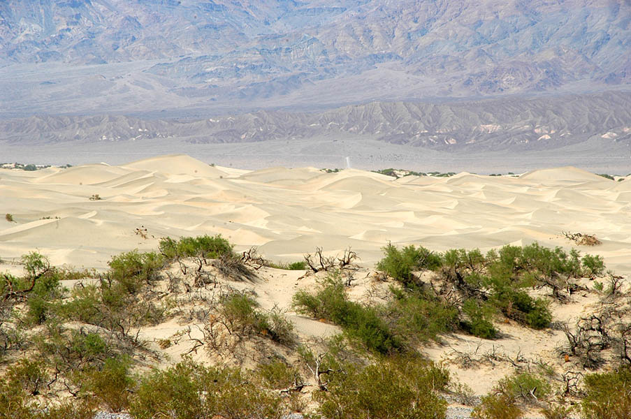 Cuando nos levantamos el domingo 4 de junio sabíamos de antemano que hoy iba a ser el día más caluroso de nuestro viaje. Por si teníamos dudas, la televisión informaba de que las temperaturas eran las más altas nunca antes registradas en estas fechas: 44º C. cruzaríamos el temible e interesante Death Valley, donde en el siglo XVI una expedición española procedente de México, fue diezmada, tras perecer su ganado y caballos. Los sobrevivientes celebraron aquí el primer acto de Acción de Gracias del Nuevo Continente.
