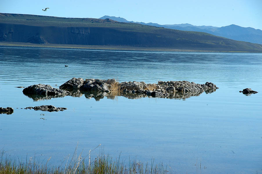 Seguimos, bordeando el Parque Yosemite, cambiando los desiertos por debajo del nivel del mar, por montañas a más de 2000 mts. hasta llegar a Lee Vining y su famoso lago salado Mono Lake, al que llaman el mar muerto de California, dentro del cual se forman curiosas rocas de calcio y sal, dormimos fresquitos en un bonito hotel del pueblo.